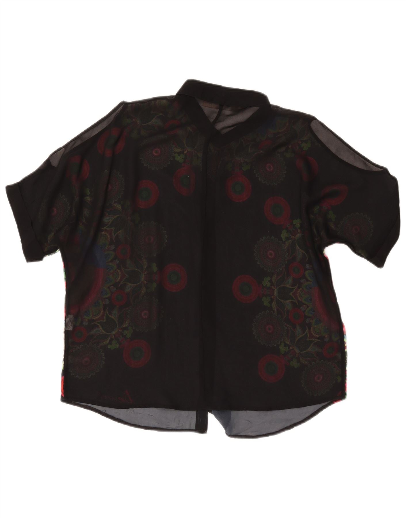 DESIGUAL Damska prześwitująca bluzka koszulowa UK 16, duża, czarna w kwiaty