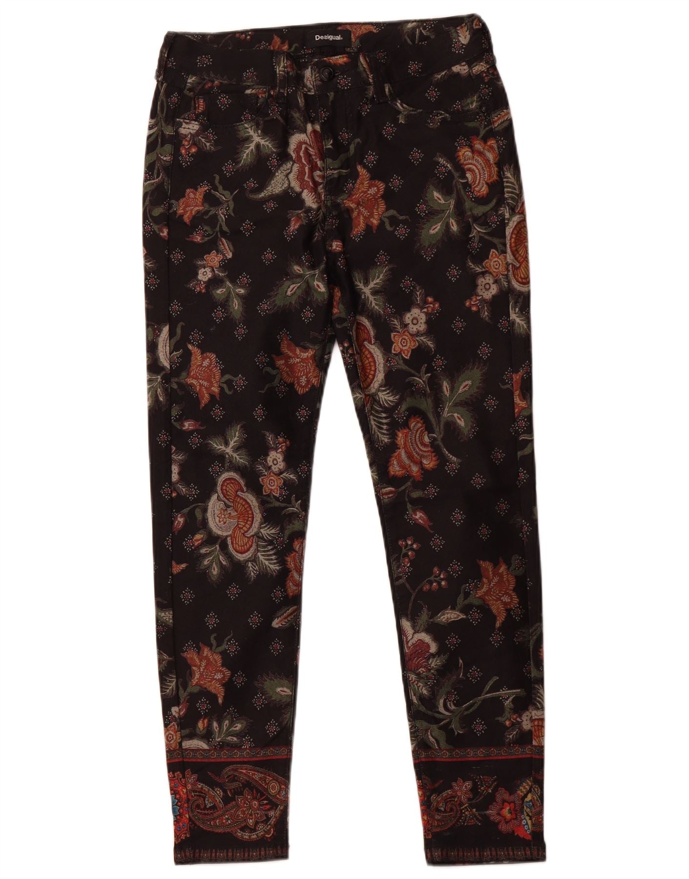 DESIGUAL Damskie spodnie typu skinny na co dzień EU 38 Medium W28 L26 Czarne w kwiaty
