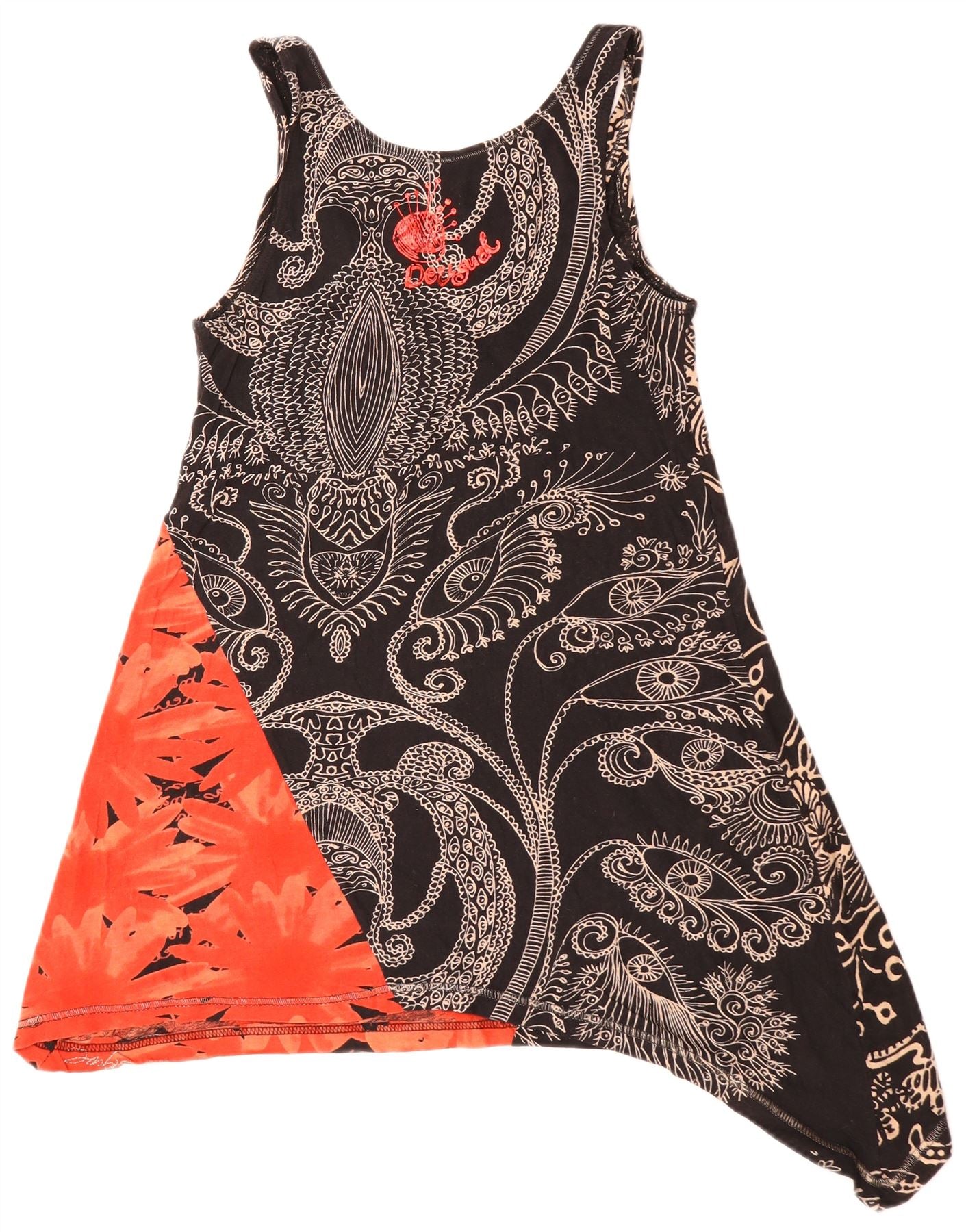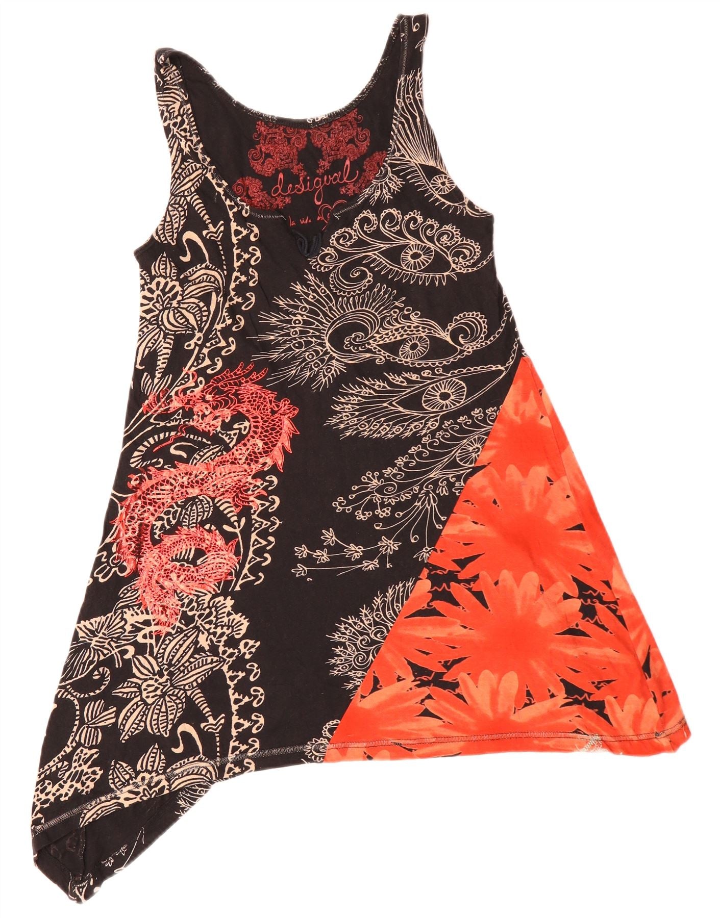 Damska asymetryczna tunika bez rękawów DESIGUAL UK 10, mała, czarna, w kwiaty