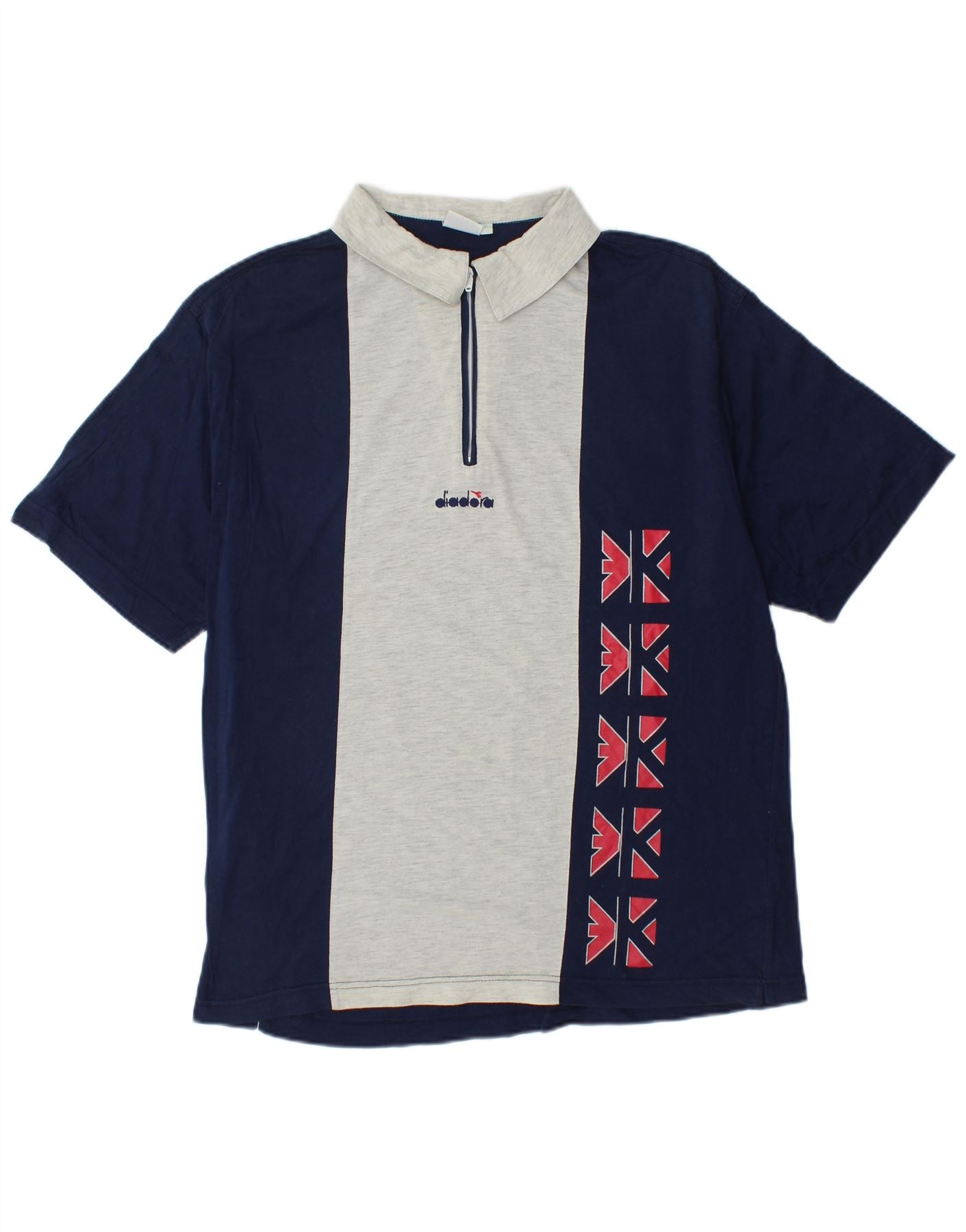 Męska koszulka polo DIADORA z grafiką, duża, granatowa, bawełniana w bloki kolorów