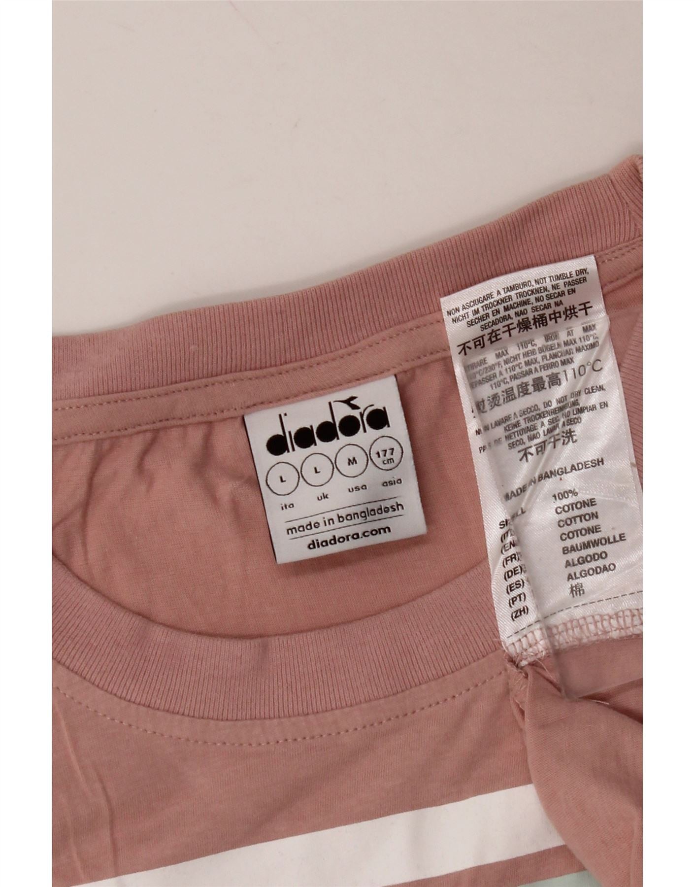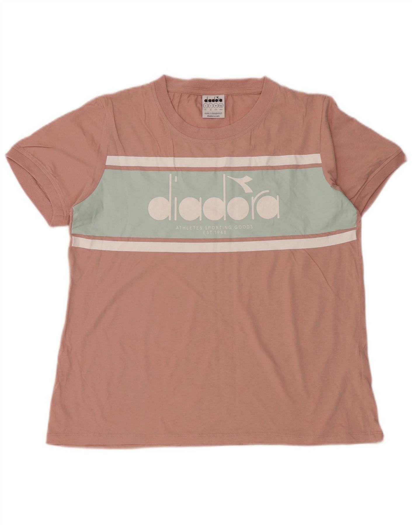 Damska koszulka z grafiką DIADORA Top UK 14, duża, różowa, bawełniana w bloki kolorów