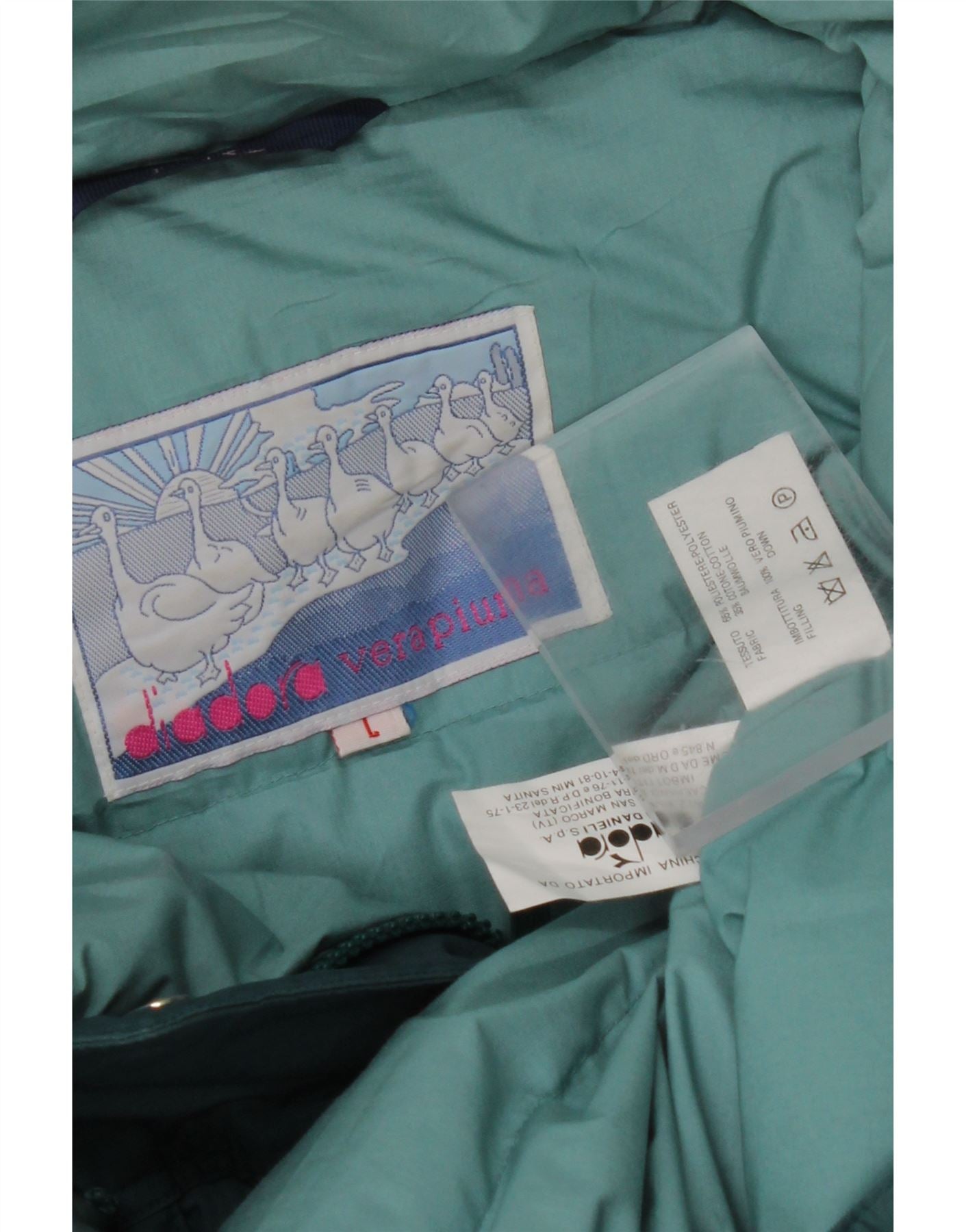 Damska, obszerna, wyściełana kurtka z kapturem DIADORA UK 16, duża niebieska w kwiaty