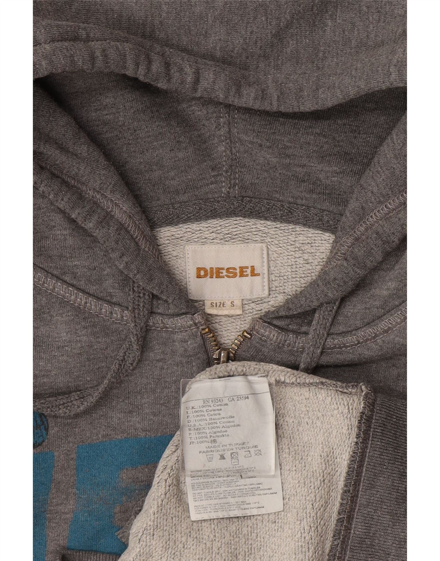Męski sweter z kapturem i zamkiem błyskawicznym DIESEL, mały, szary, bawełniany