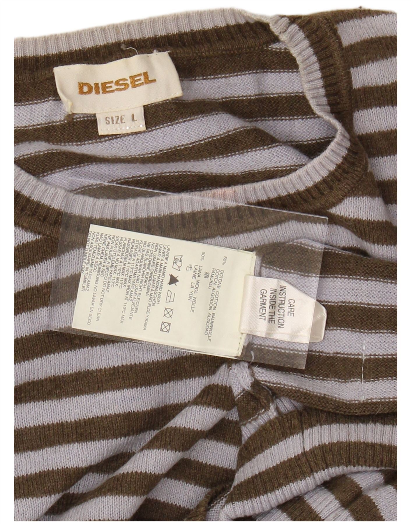 Home > Damskie > Odzież Depopa > Damski sweter z okrągłym dekoltem DIESEL UK 16, duża, bawełniana w paski khaki