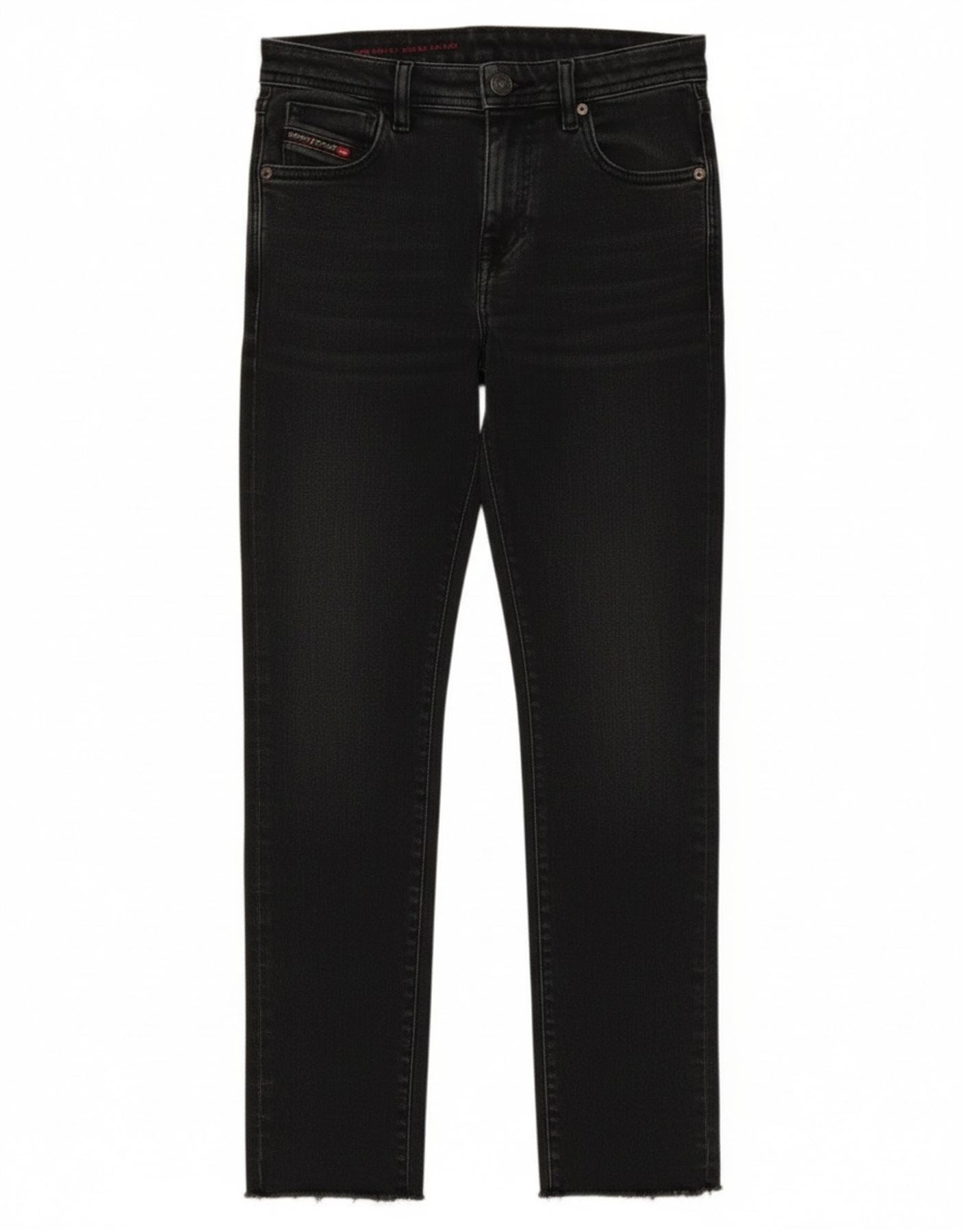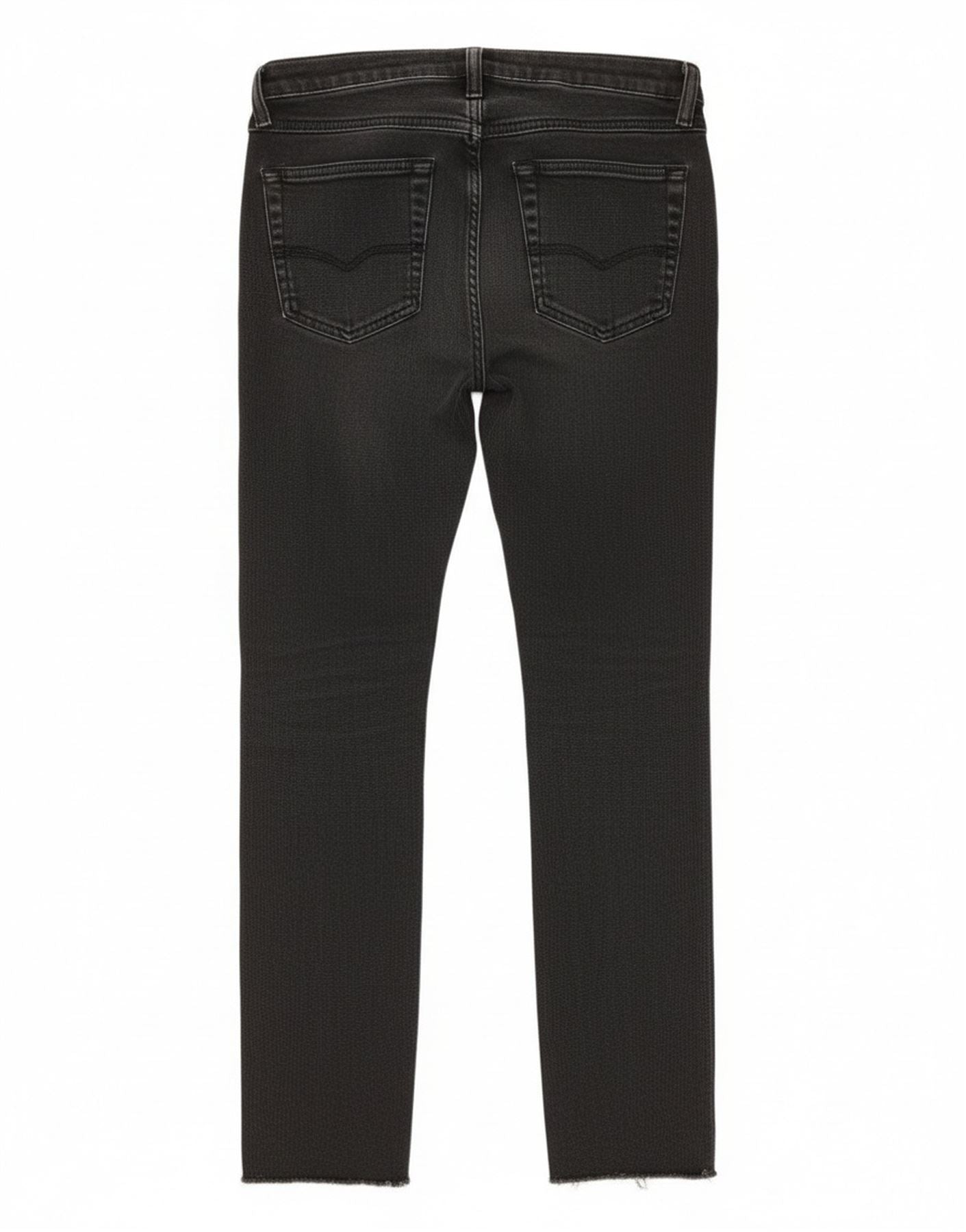 - Opis sztucznej inteligencji: Damskie obcisłe dżinsy Diesel są wykonane z czarnego dżinsu z postarzanym wykończeniem. Mają średni stan i zapięcie na guziki. Krój slim fit zwęża się do skróconej długości. Obszycia są surowe i postrzępione. W zestawie klasyczne kieszenie. Subtelne logo marki dodaje charakterystycznego akcentu.