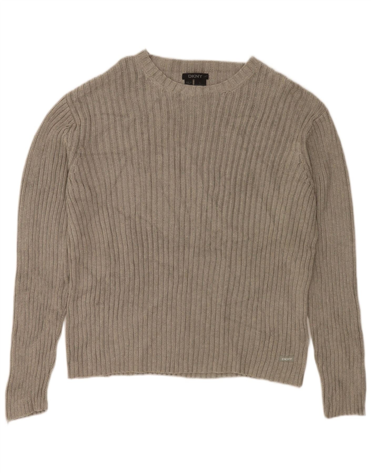 Damski sweter z dekoltem w łódkę DKNY UK 16, duży, szary, bawełniany