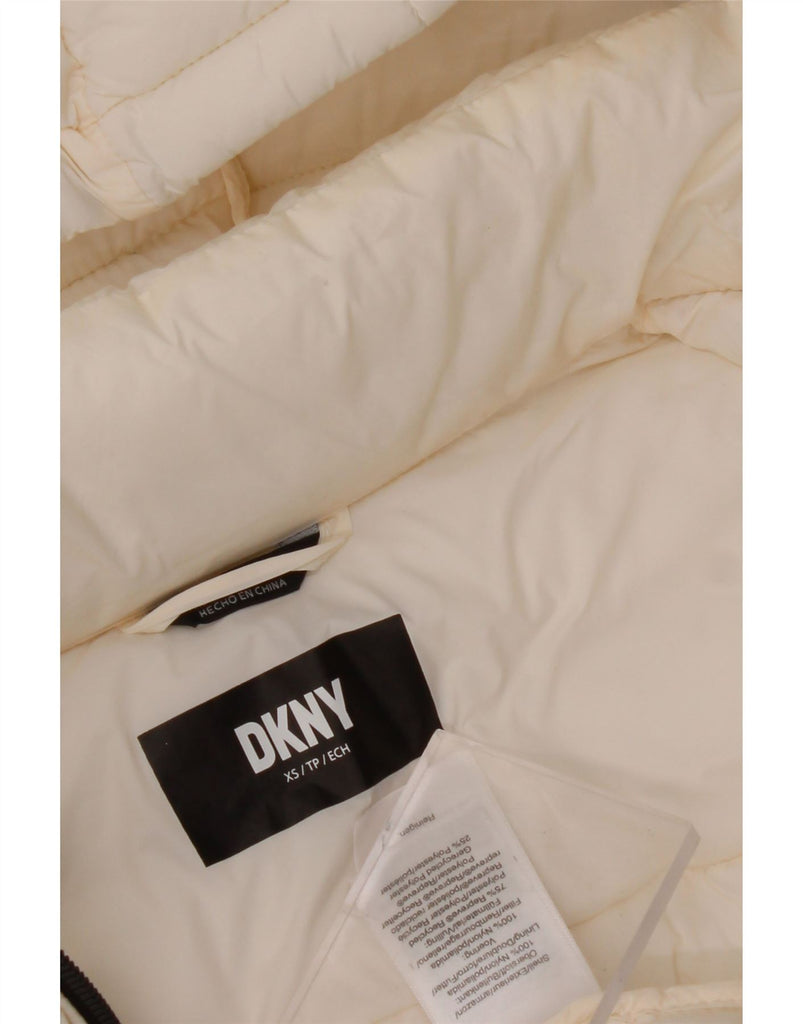 Damska wyściełana kurtka z kapturem i luźnym krojem DKNY UK 6 XS w kolorze złamanej bieli, nylon