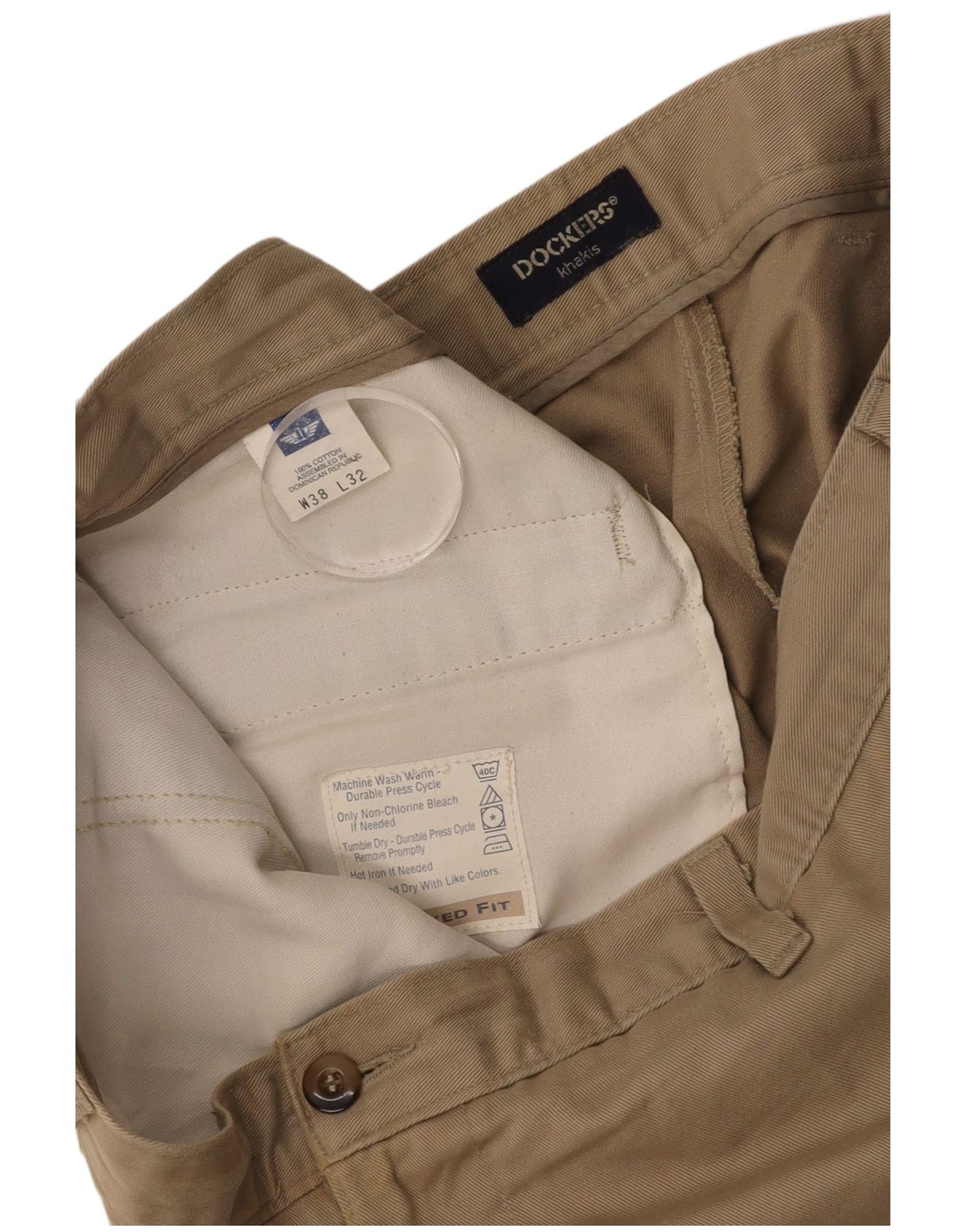 DOCKERS Męskie proste spodnie chino w kolorze khaki W38 L27 Beżowa bawełna