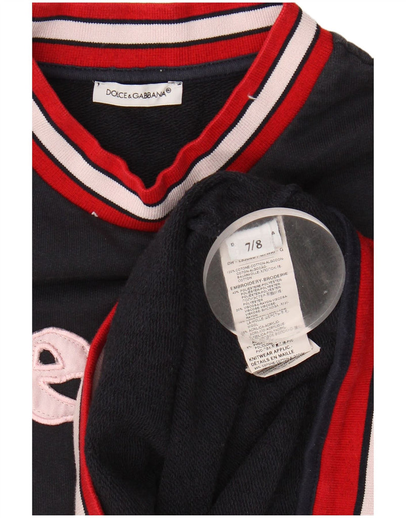 DOLCE & GABBANA Girls Graphic Long Sleeve Jumper Dress 7-8 Years Navy Blue