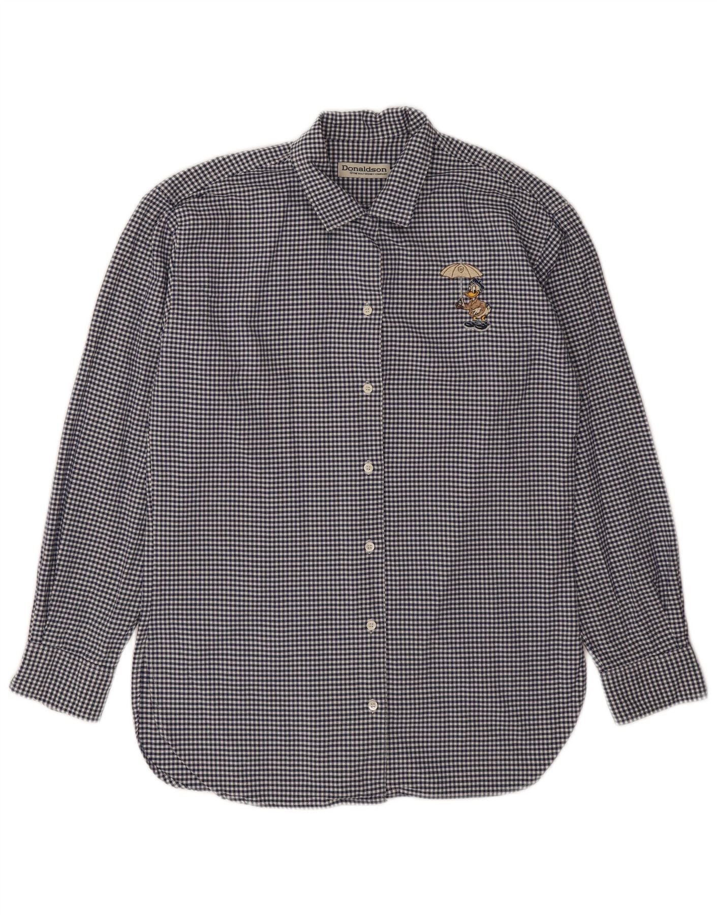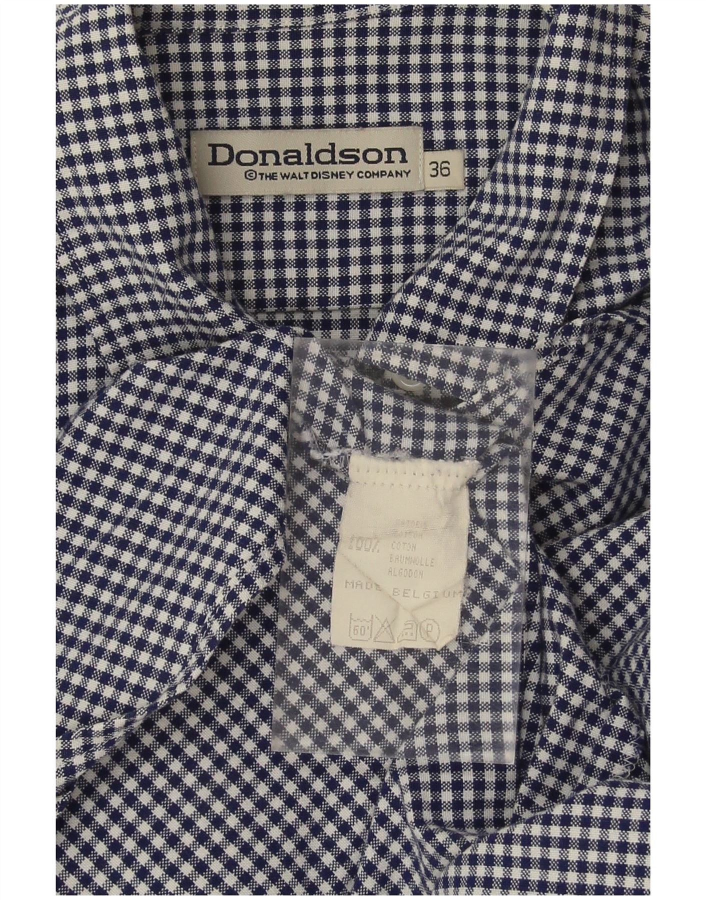 DONALDSON Womens Flannel Shirt EU 36 Small Navy Blue Gingham Cotton
