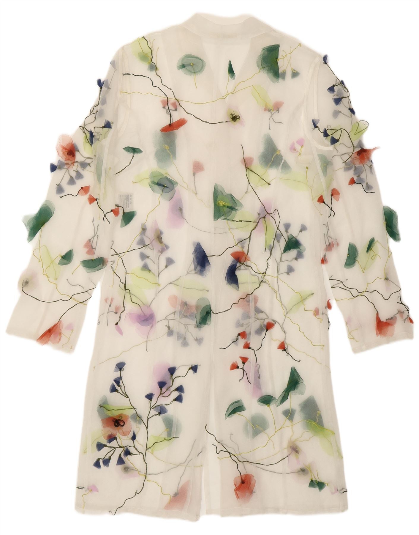 EAST Womens See Through Longline Cardigan Top UK 10 Small Off White Floral