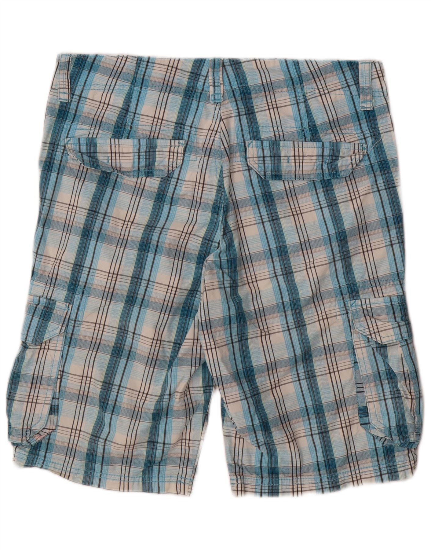 Męskie spodenki cargo EDC W34 w dużą niebieską kratkę