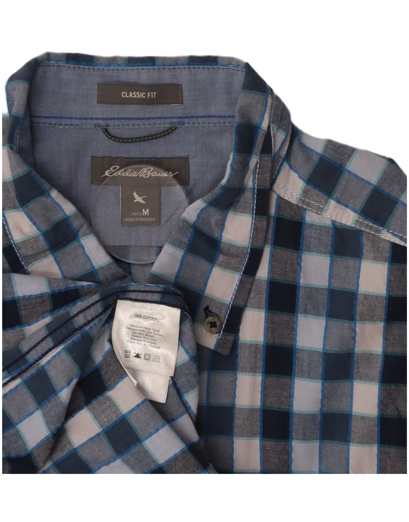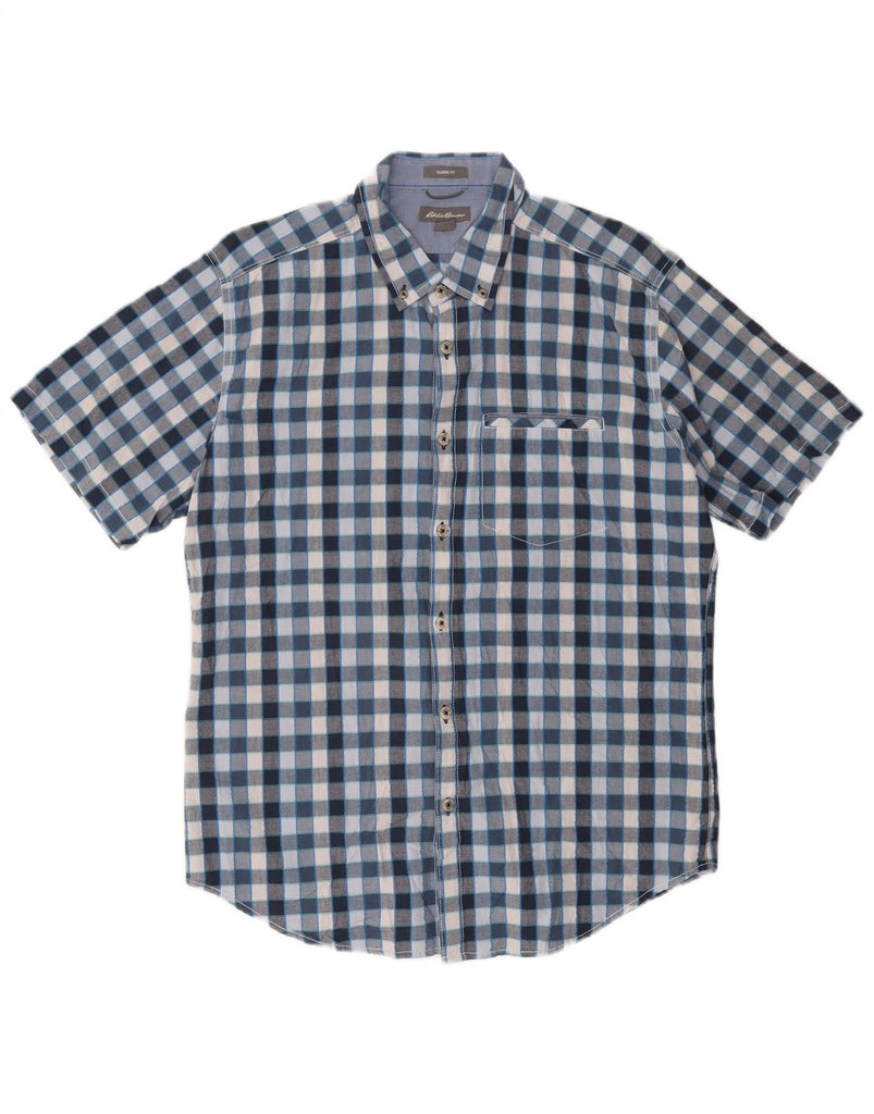 EDDIE BAUER Męska koszula z krótkim rękawem o klasycznym kroju, bawełniana w średnią niebieską kratkę