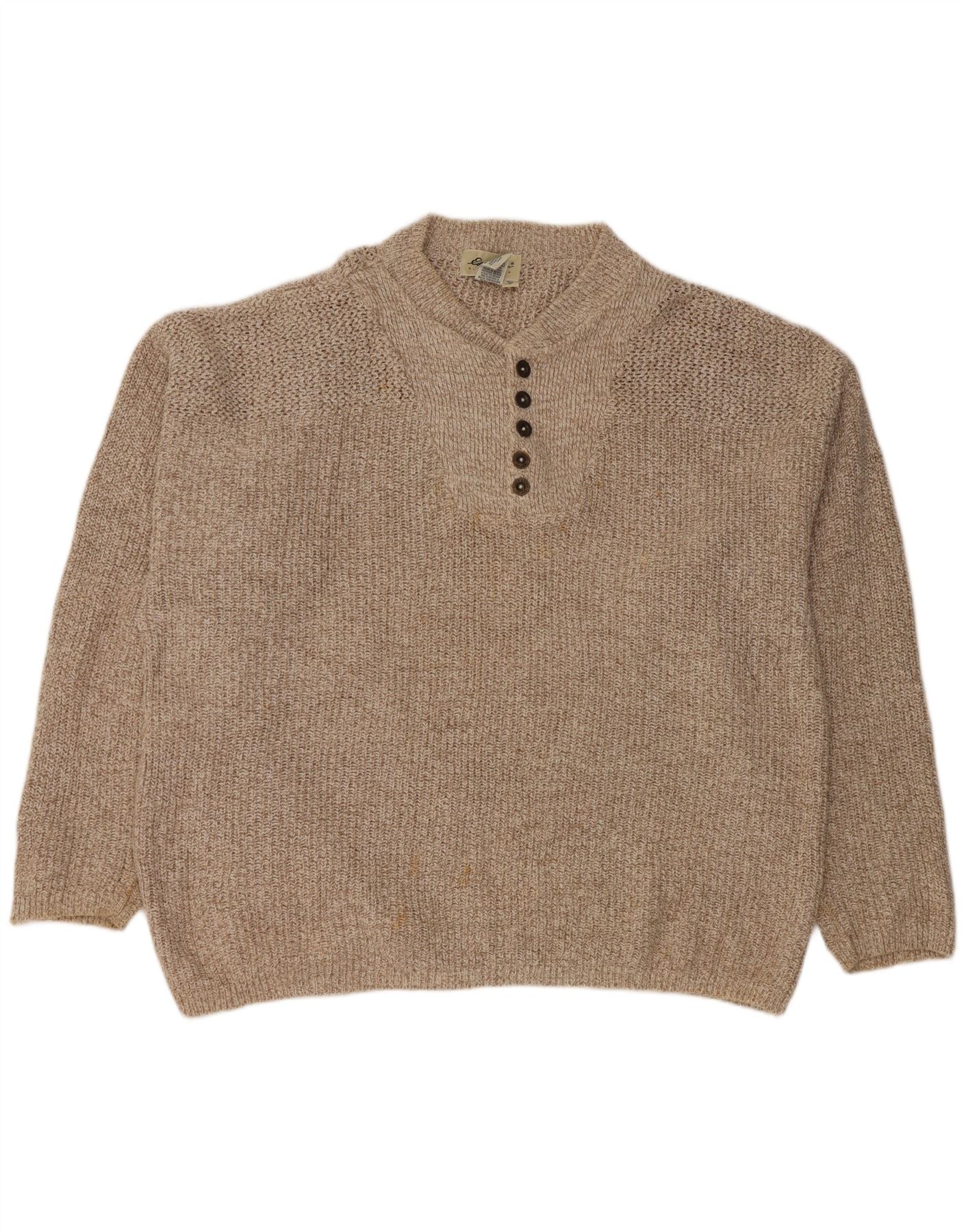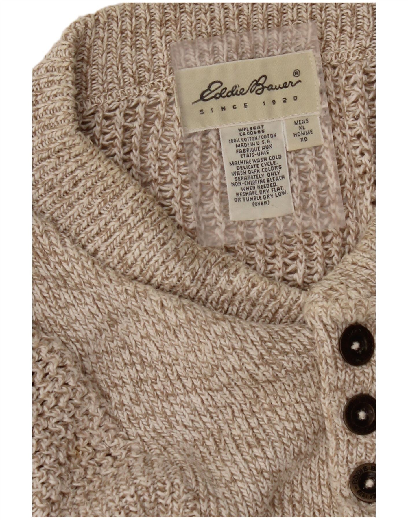 Męski sweter oversize EDDIE BAUER zapinany pod szyją XL, beżowy, nakrapiany