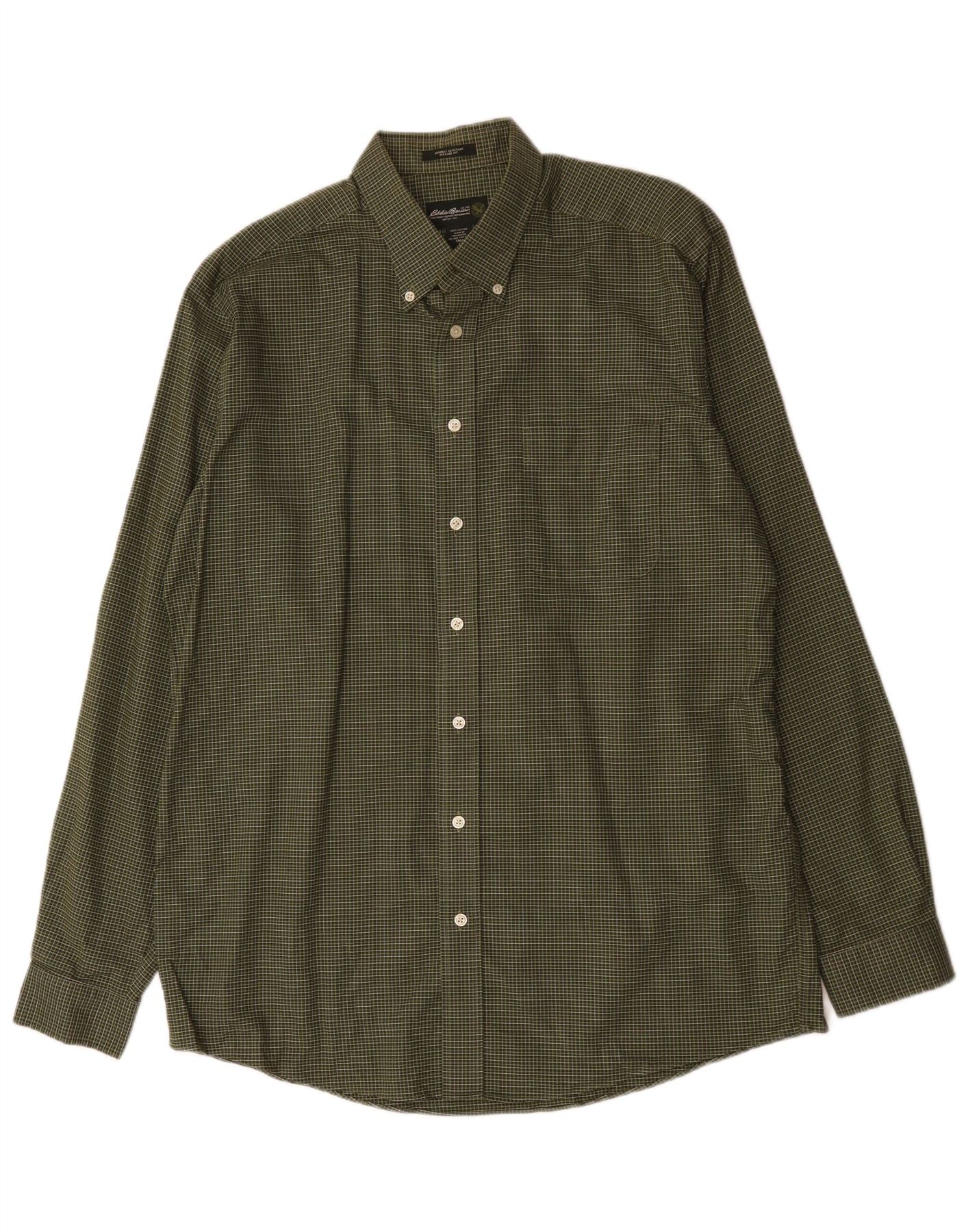 EDDIE BAUER Męska koszula o swobodnym kroju, duża, bawełniana w zieloną kratkę