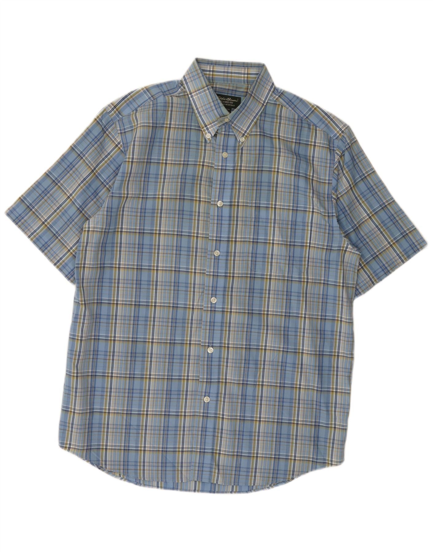 EDDIE BAUER Męska koszula z krótkim rękawem o swobodnym kroju, bawełniana w średnią niebieską kratkę