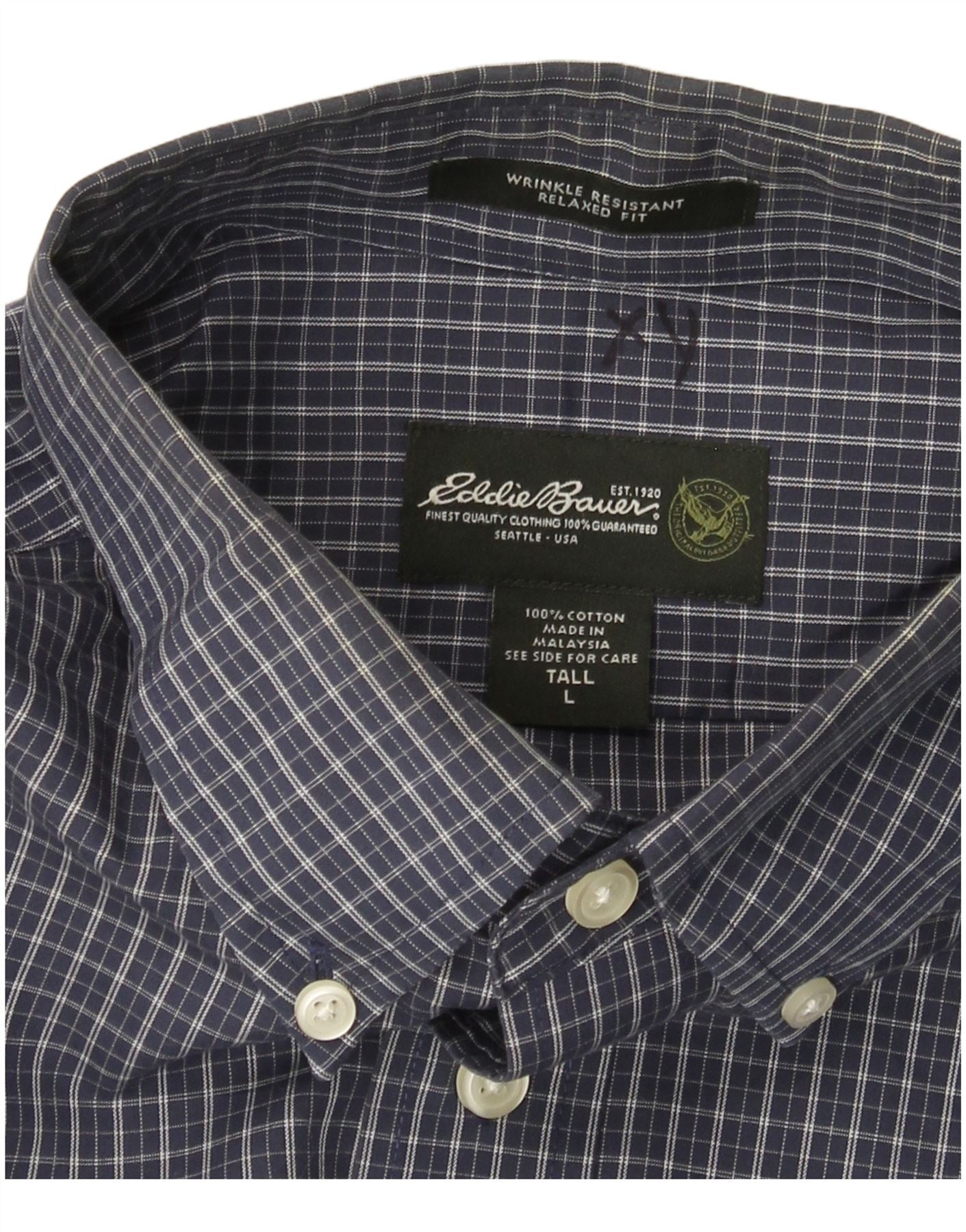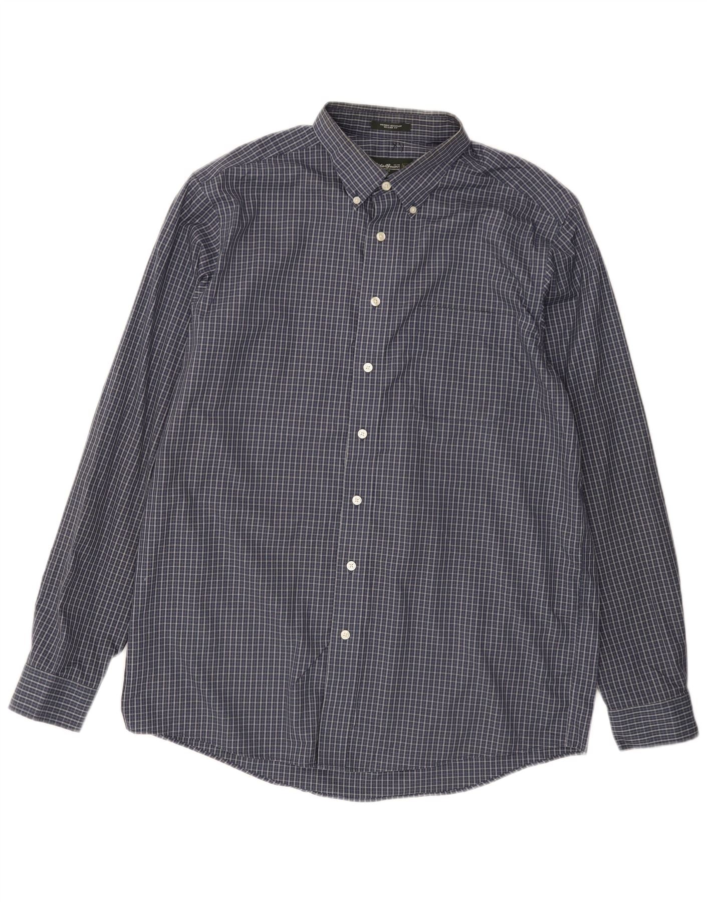 EDDIE BAUER Męska koszula o swobodnym kroju, duża, granatowa, bawełniana w kratę