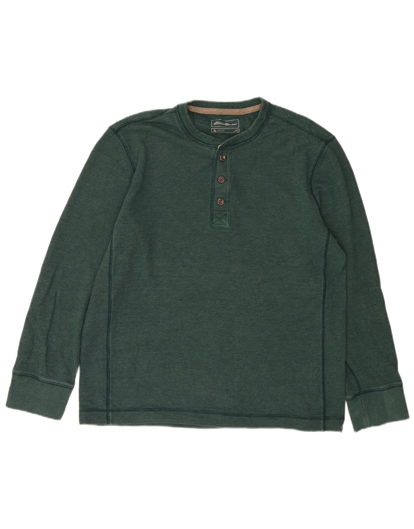 EDDIE BAUER Męski top z długim rękawem, duży, zielony, bawełniany