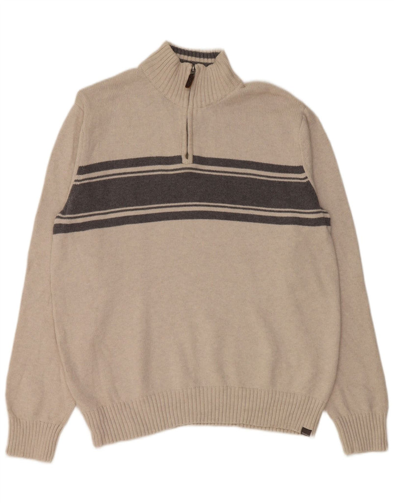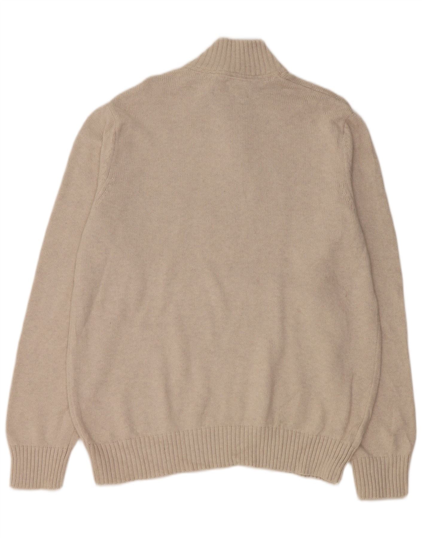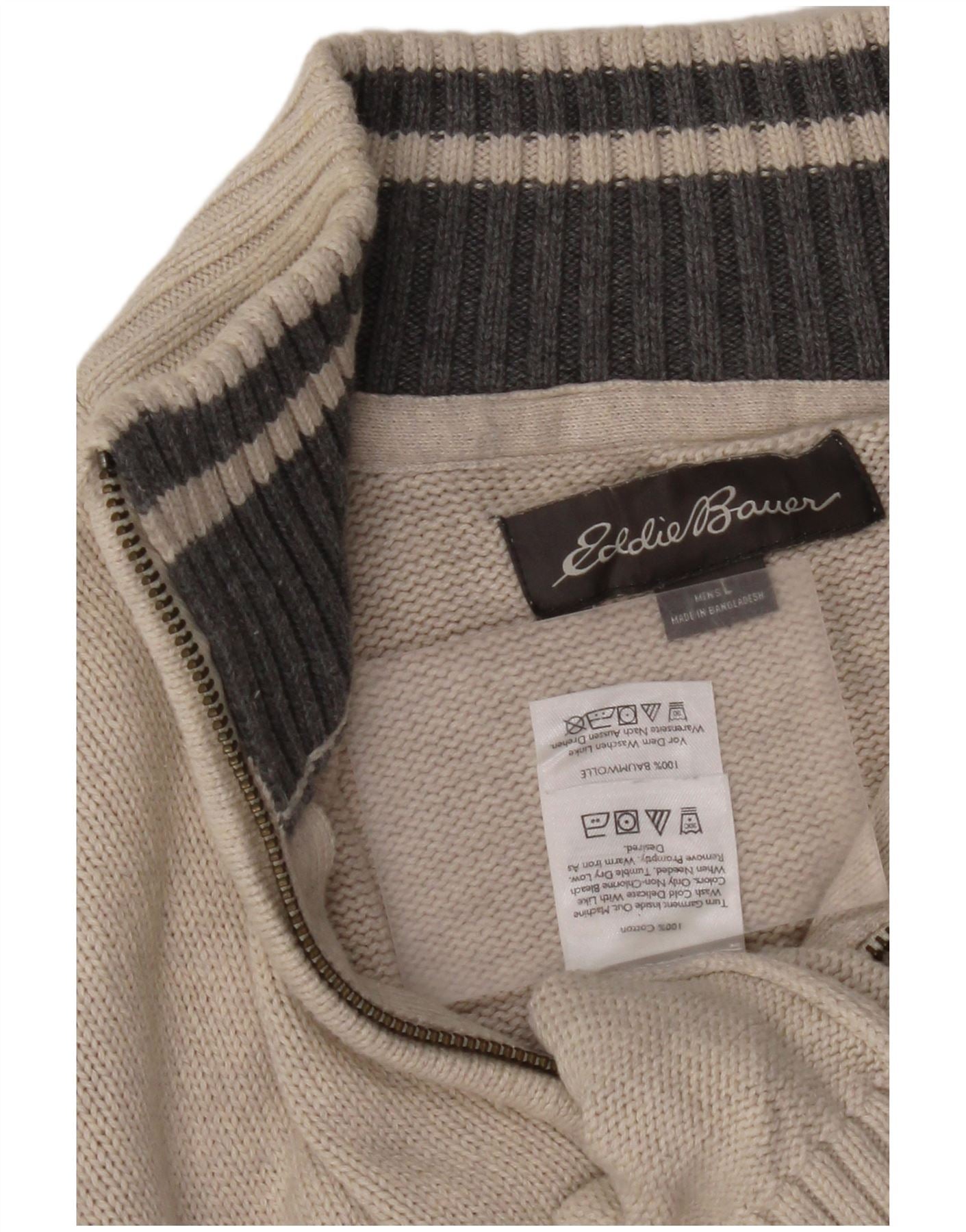 EDDIE BAUER Męski sweter zapinany na zamek, duży, beżowy, bawełniany z blokami kolorów
