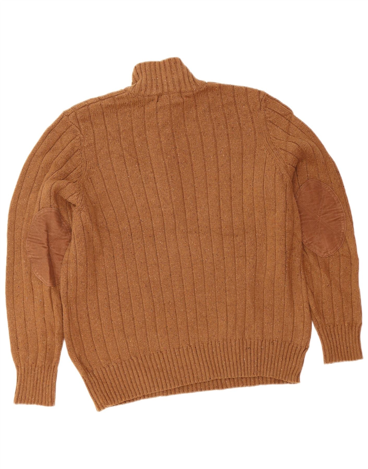EDDIE BAUER Męski sweter z zamkiem błyskawicznym, średniobrązowy, bawełniany w plamki