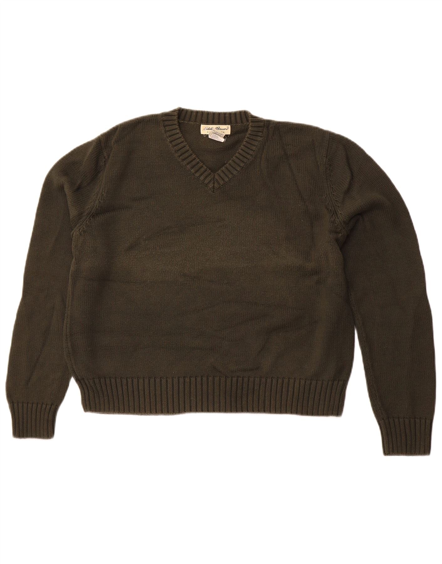 EDDIE BAUER Damski sweter z dekoltem w kształcie litery V, UK 16, duży, zielony, bawełniany