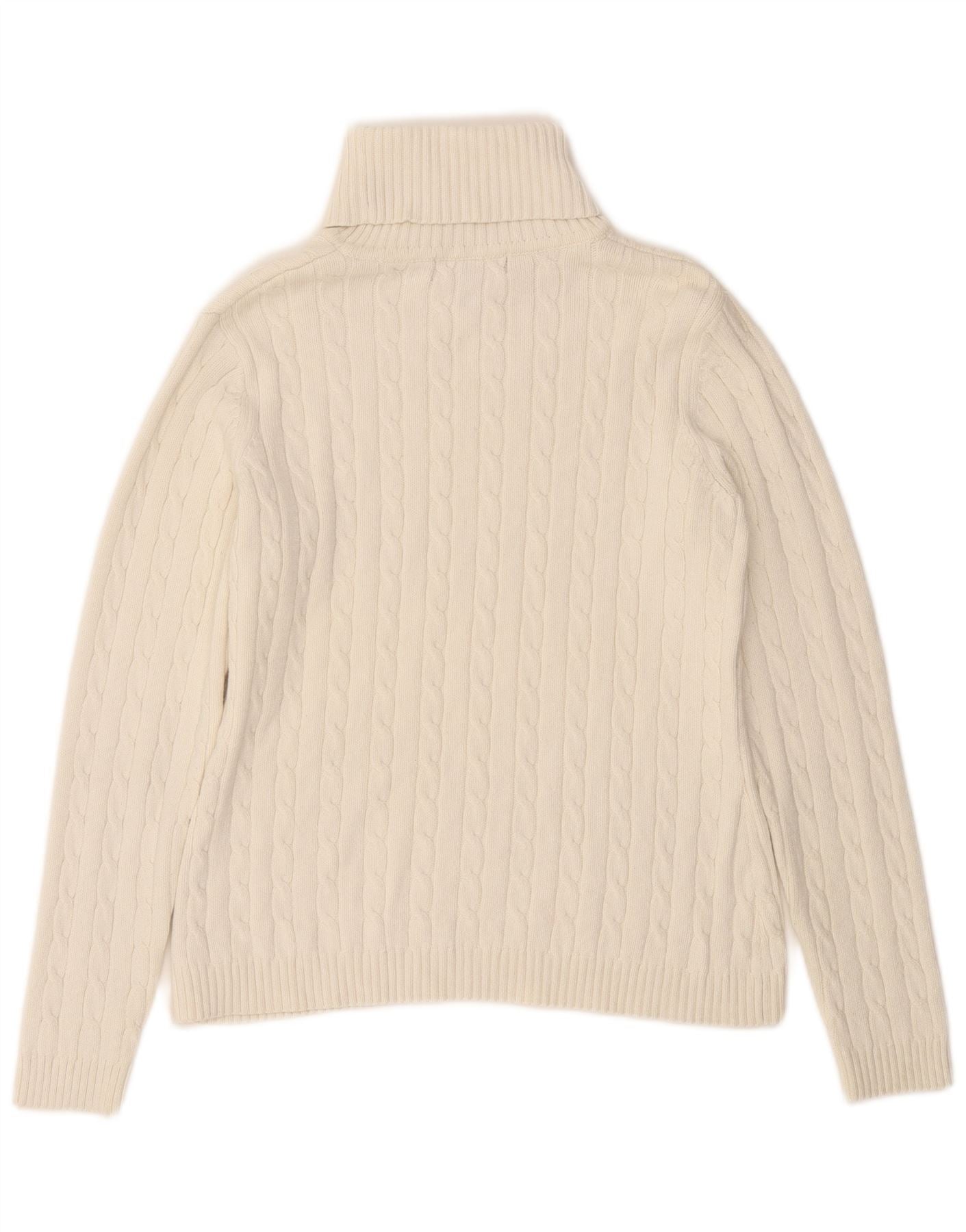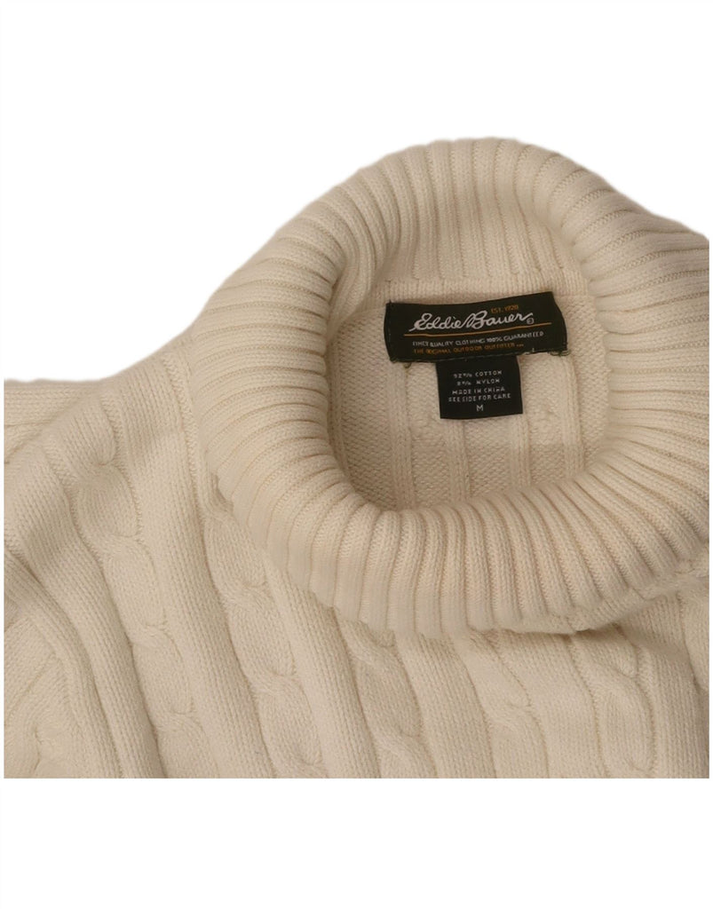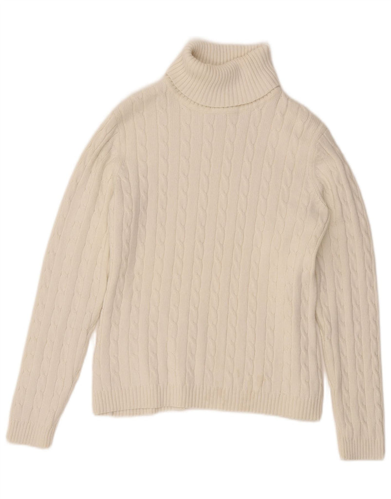 EDDIE BAUER Womens Roll Neck Jumper Sweater UK 14 Medium White Cotton