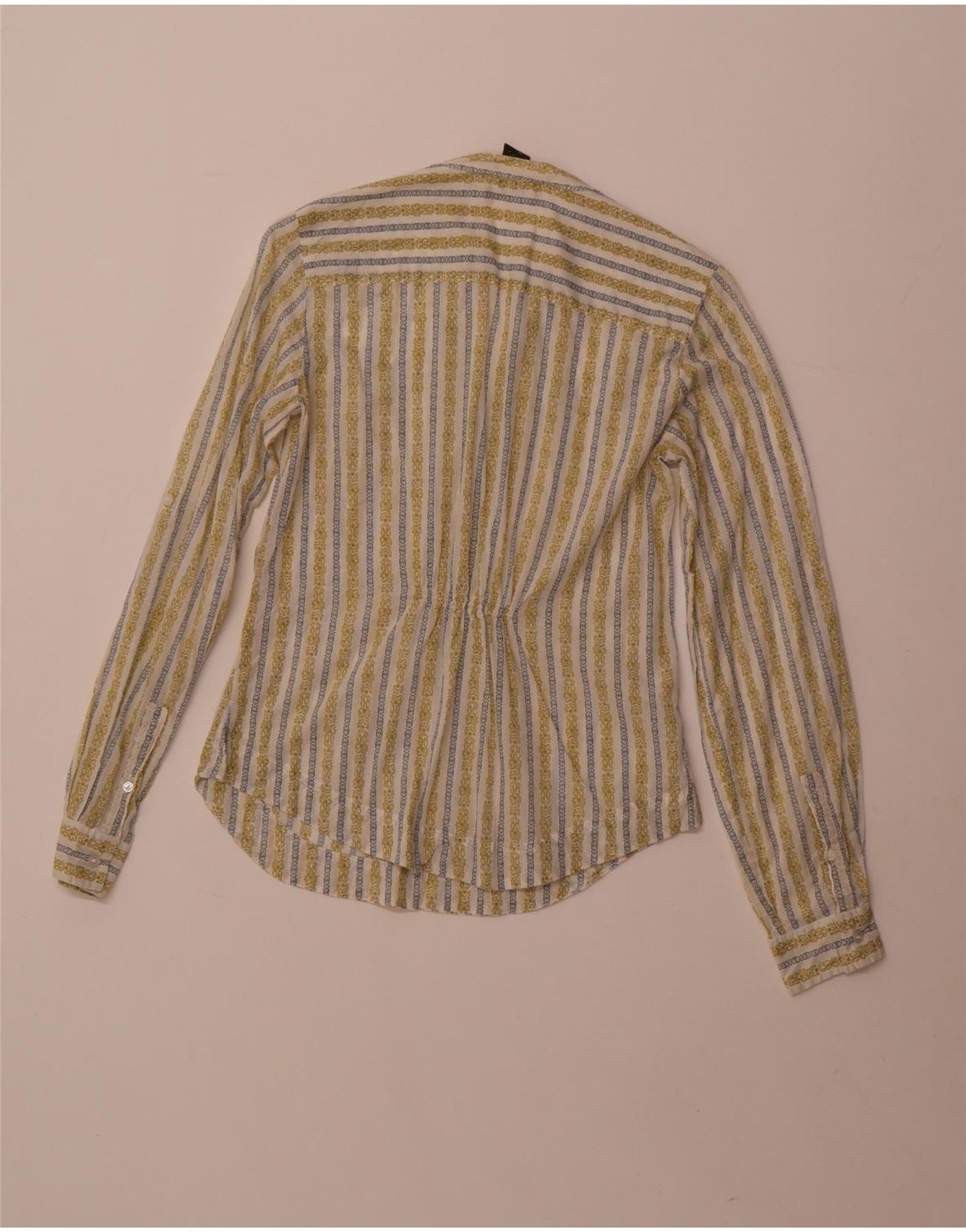 - Opis sztucznej inteligencji: Damska bluzka koszulowa Eddie Bauer jest wykonana w 100% z bawełny, dzięki czemu jest lekka. Posiada wielokolorowy wzór w paski, łączący odcienie bieli, żółci i błękitu. Dekolt z kołnierzykiem prowadzi do zapięcia z przodu na guziki. Długie rękawy zakończone mankietami zapinanymi na guziki. Regularny krój zapewnia wygodę noszenia. Abstrakcyjny wzór w paski dodaje wizualnego zainteresowania.