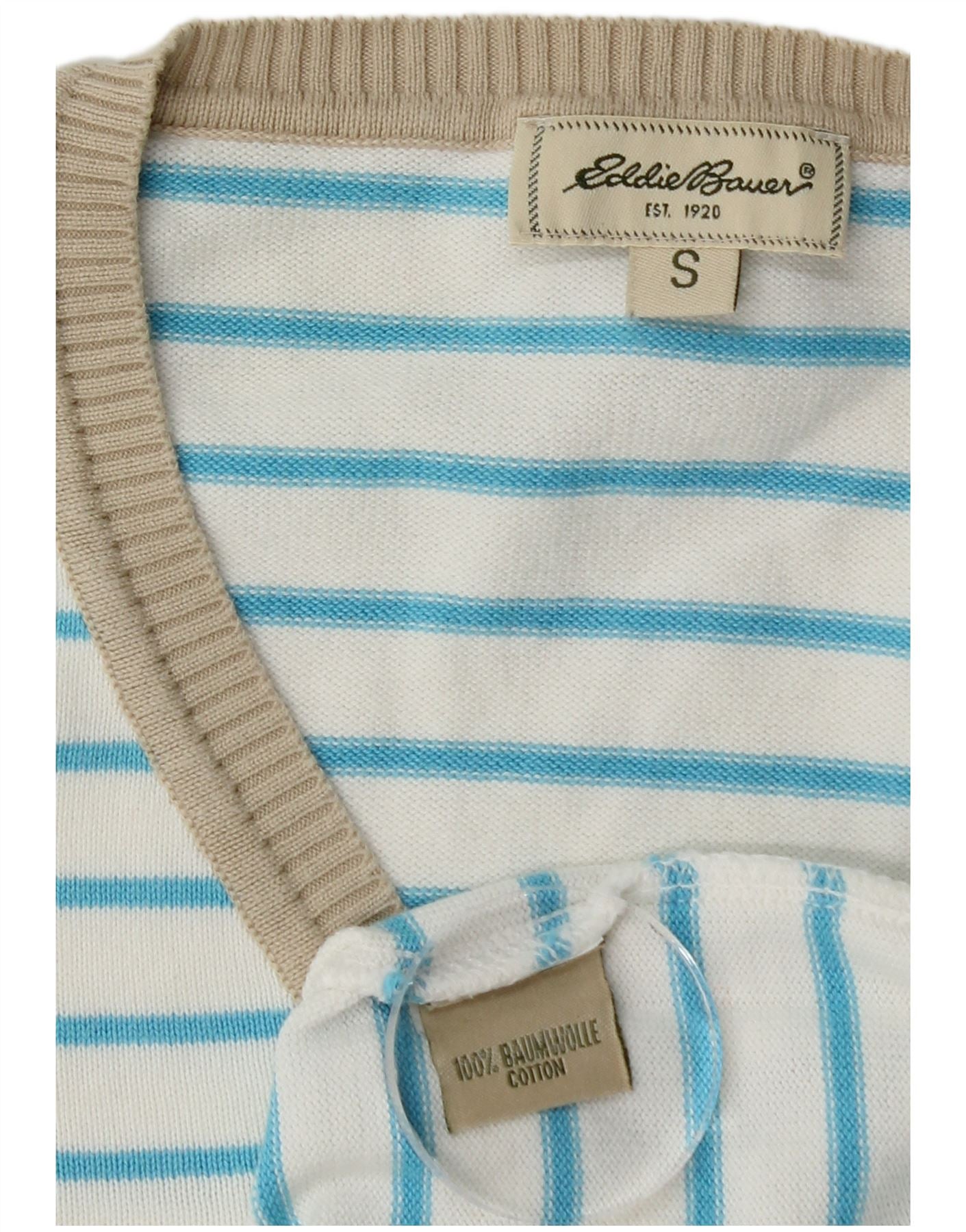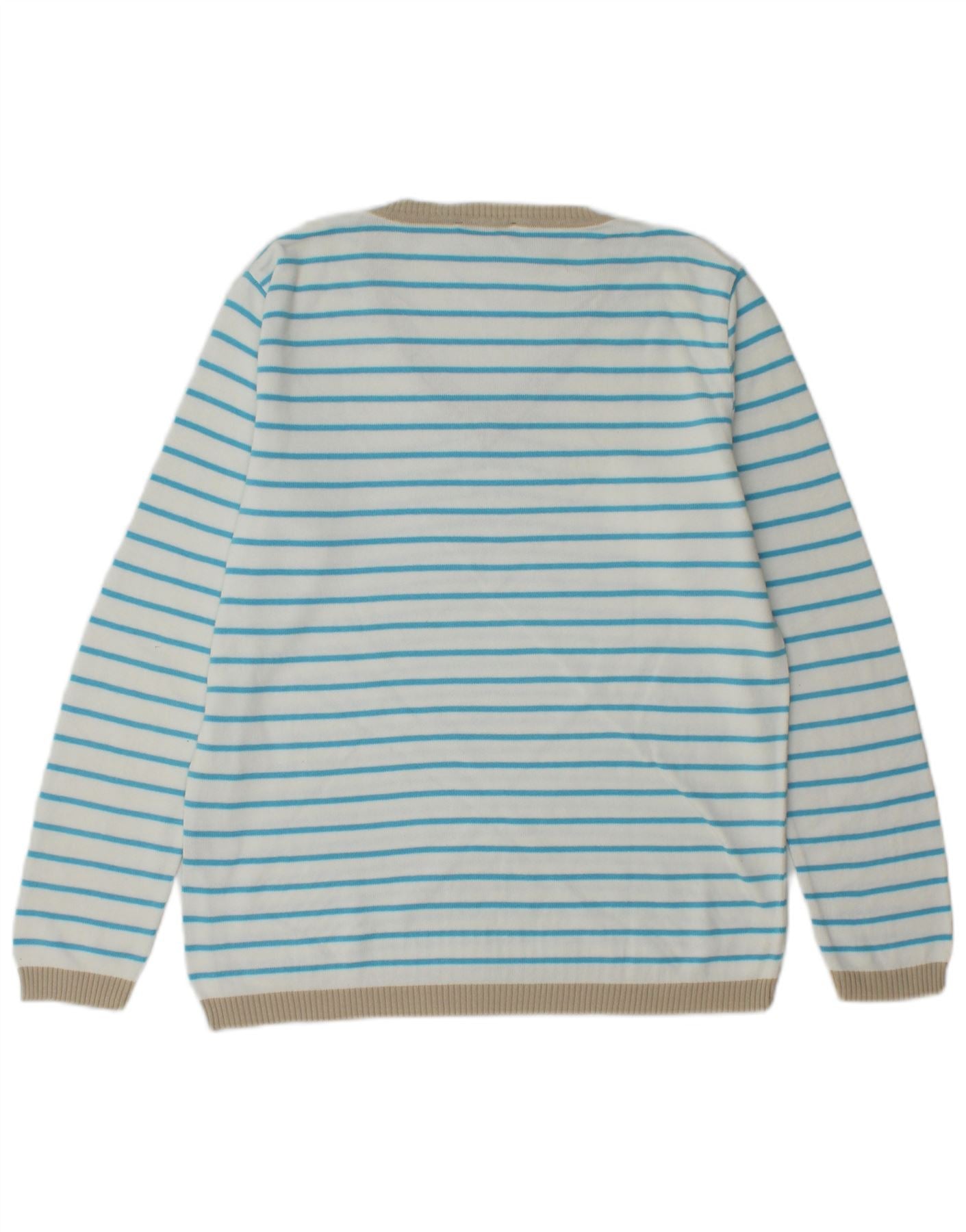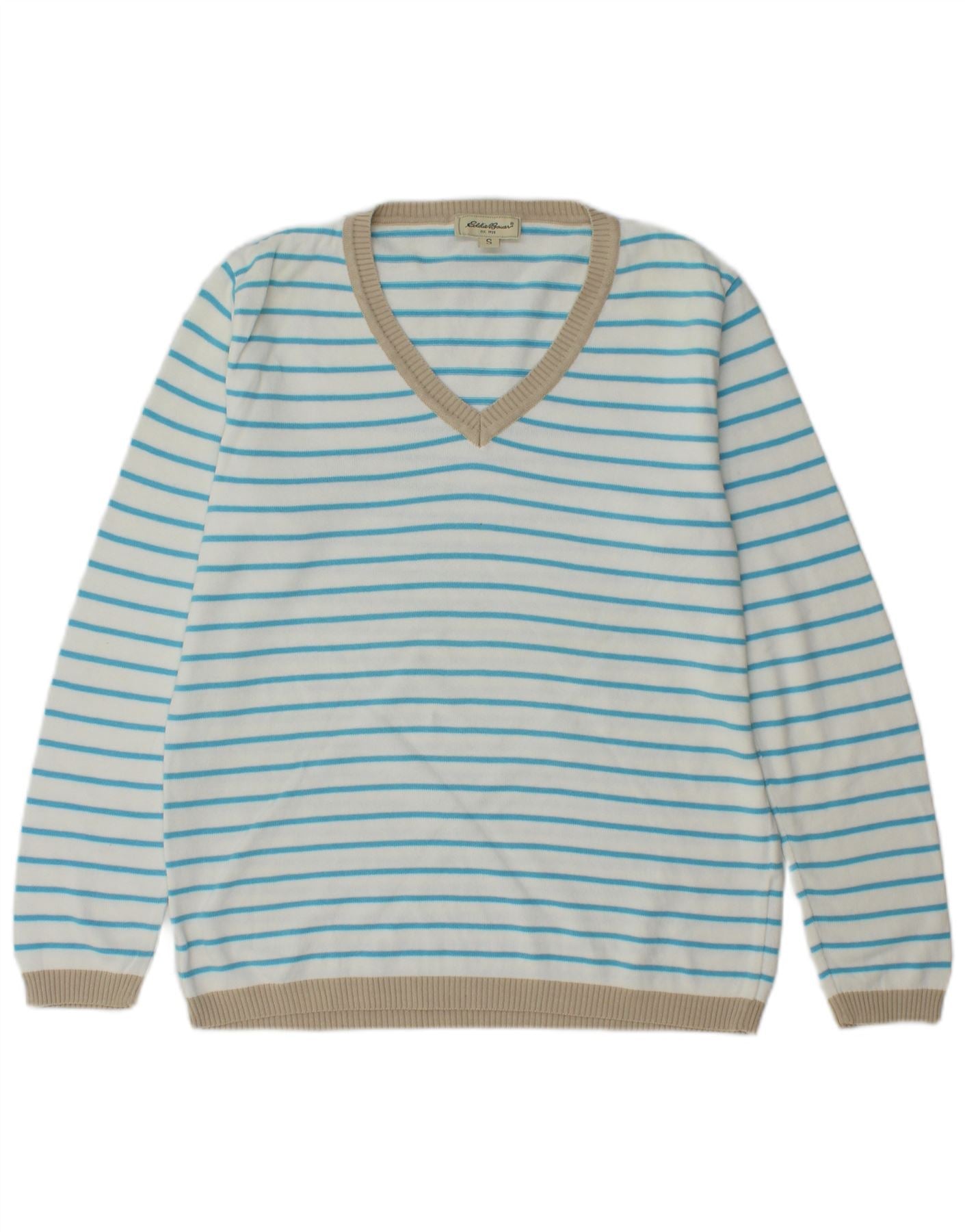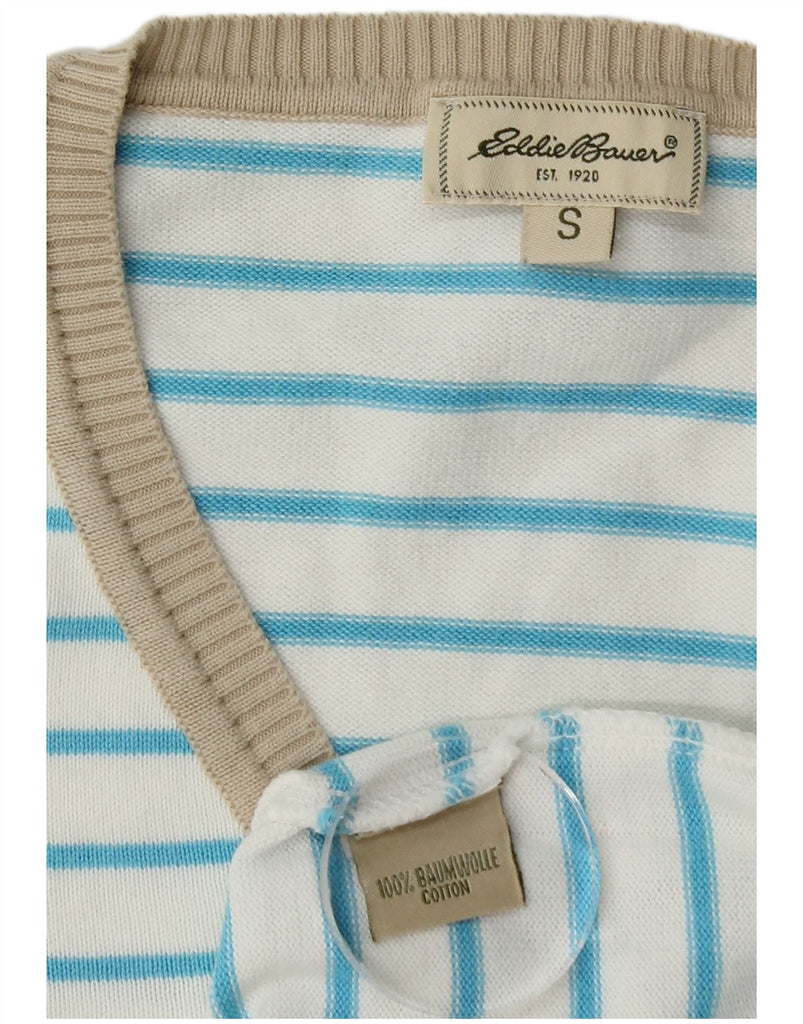 EDDIE BAUER Womens V-Neck Jumper Sweater UK 10 Small White Striped