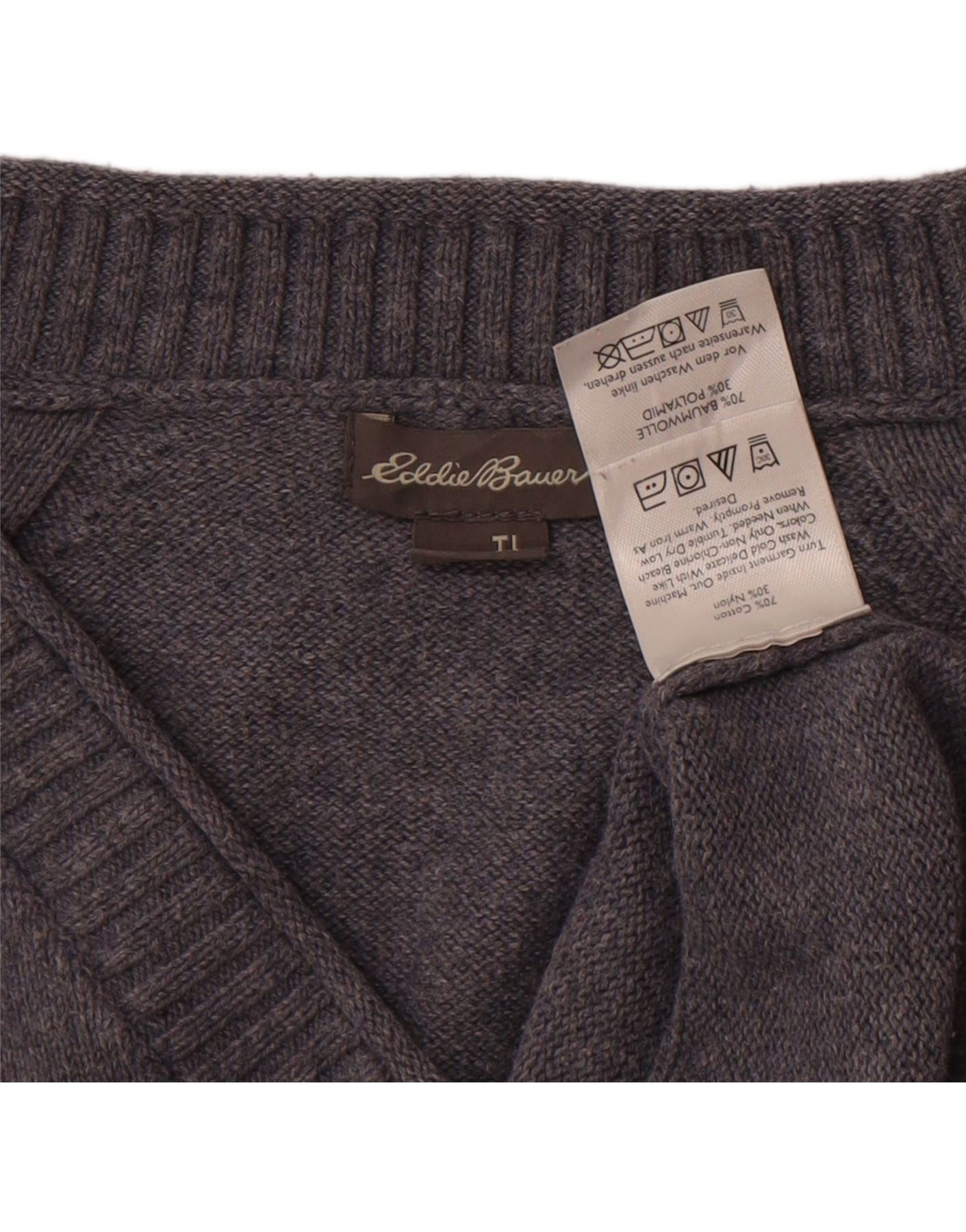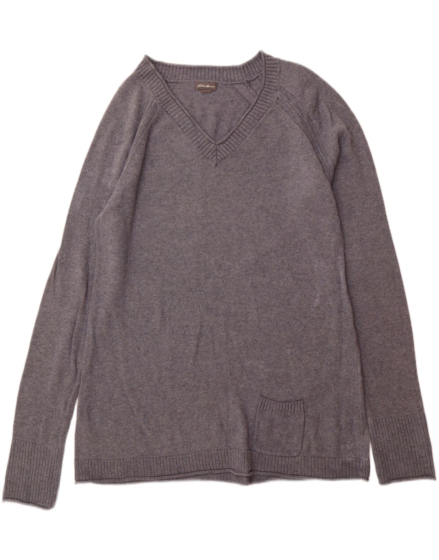 EDDIE BAUER Womens V-Neck Jumper Sweater UK 16 Large Grey Cotton