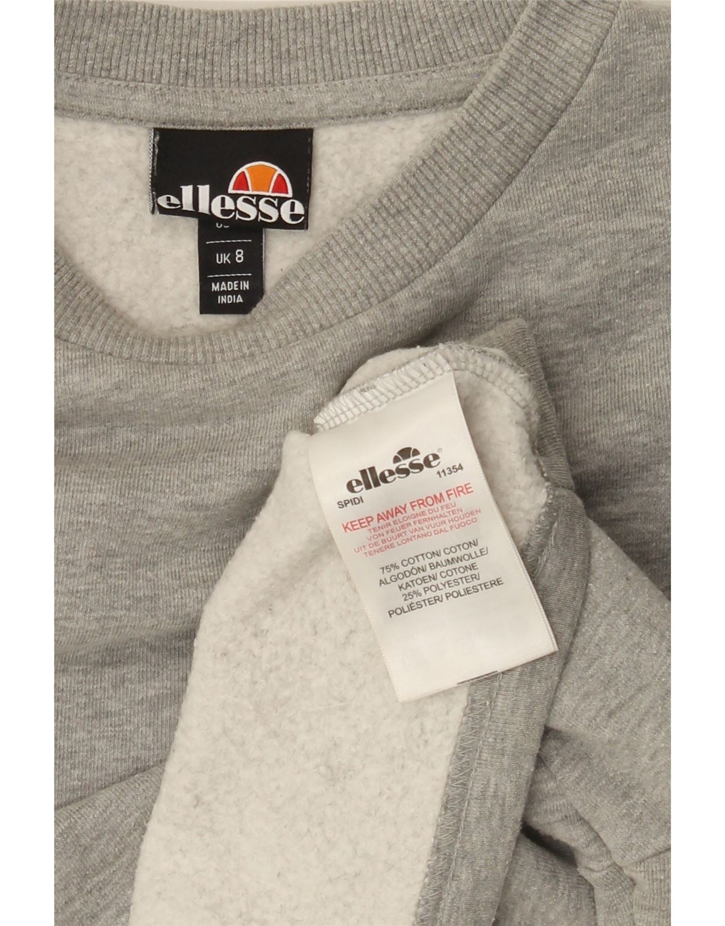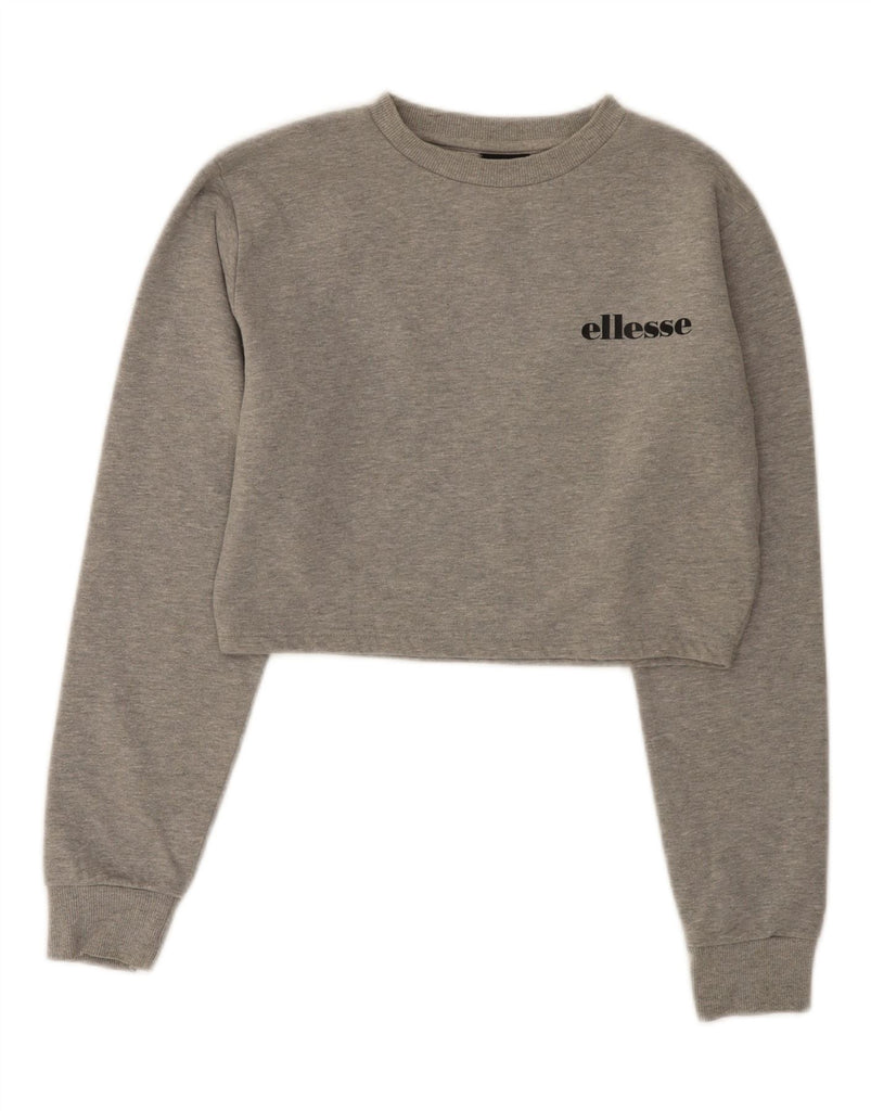 ELLESSE Womens Crop Oversized Sweatshirt Jumper UK 8 Small Grey Flecked