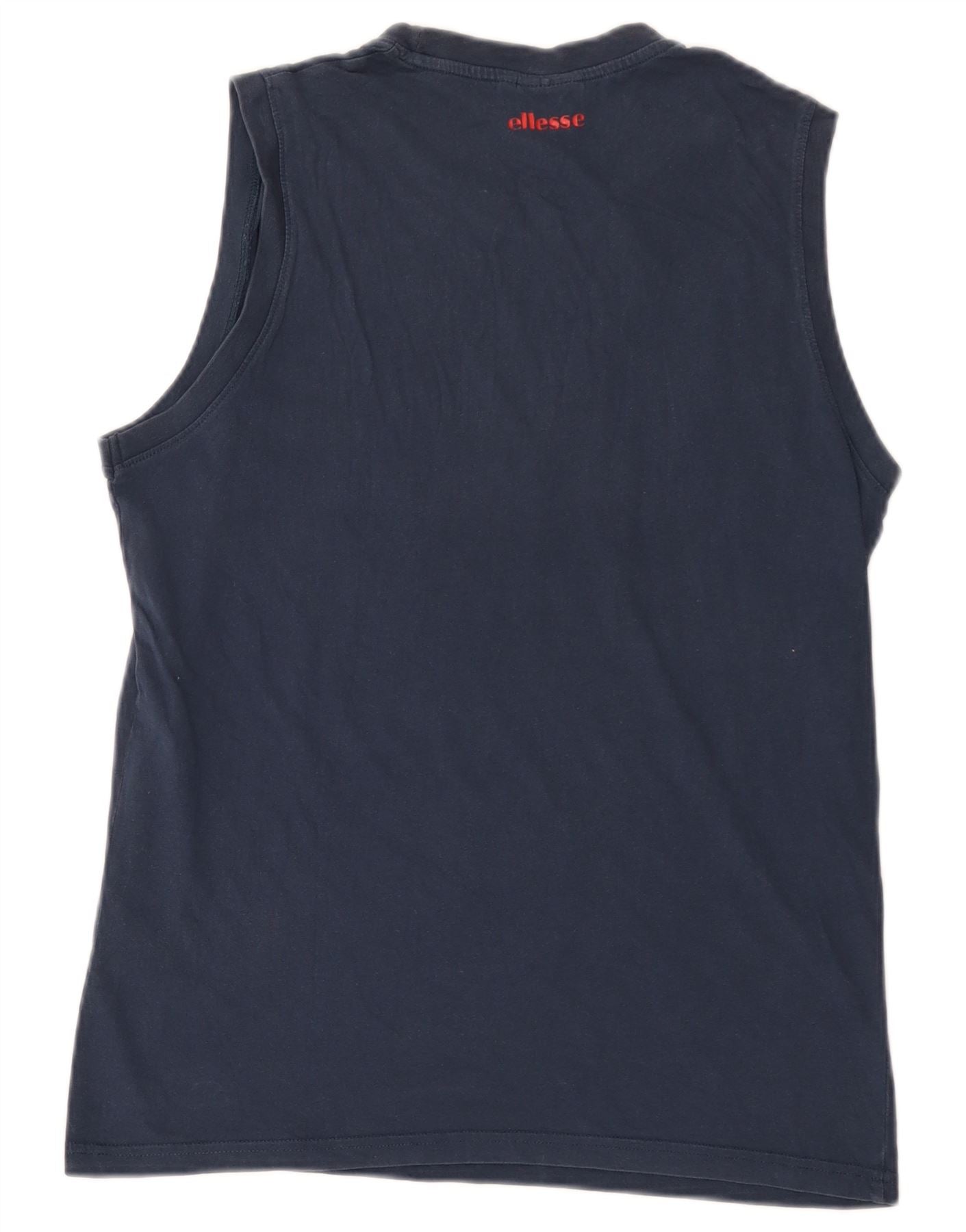 ELLESSE Womens Graphic Vest Top UK 16 Large Navy Blue Cotton
