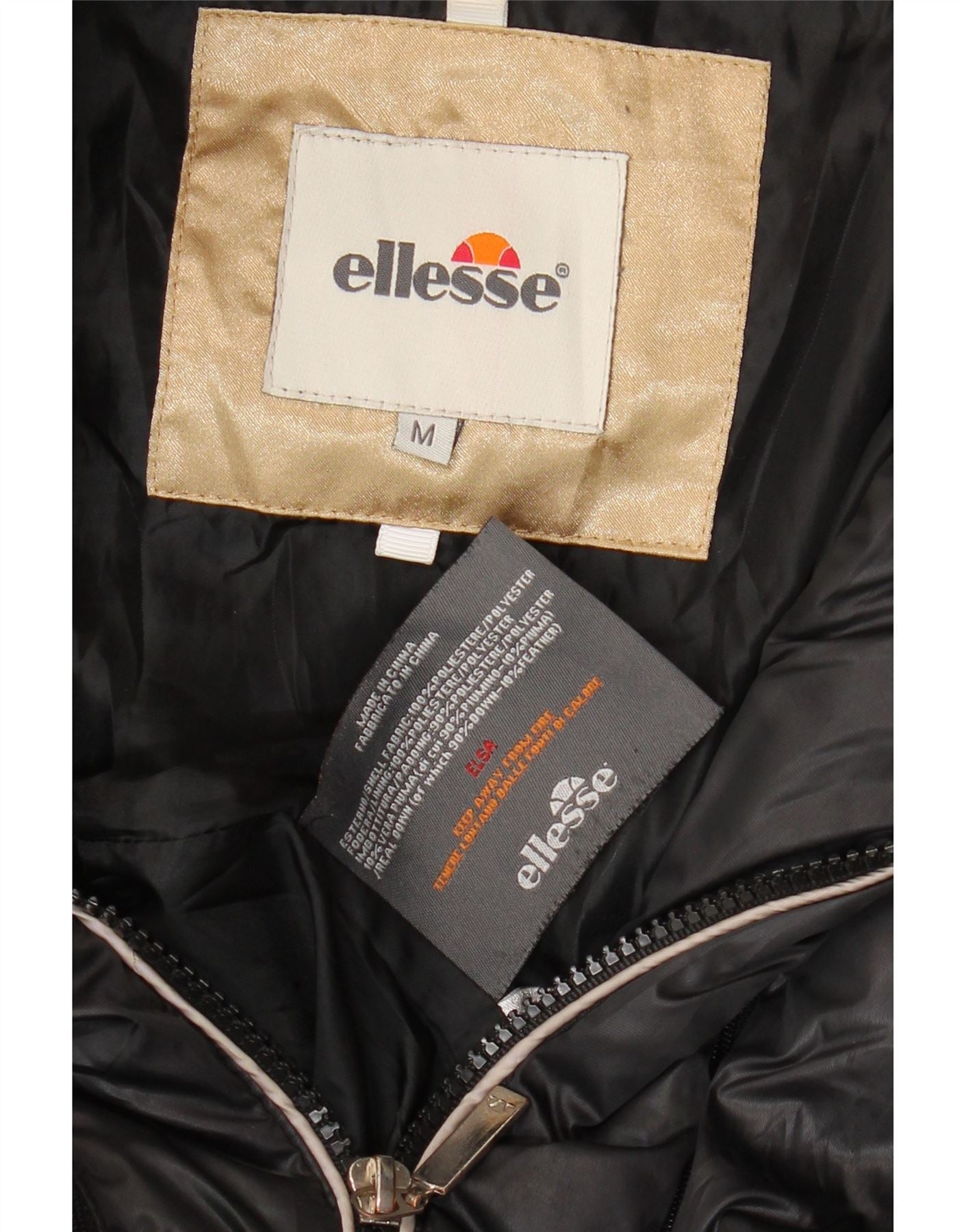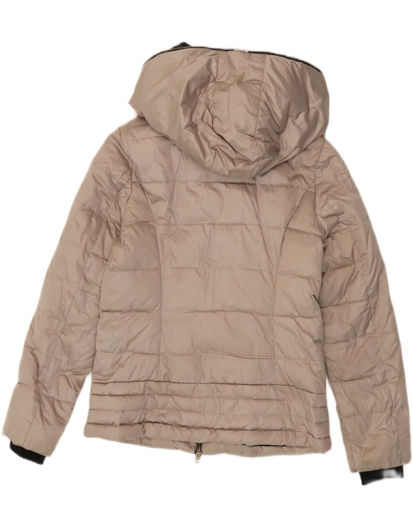 ELLESSE Womens Hooded Padded Jacket UK 14 Medium Beige Polyester