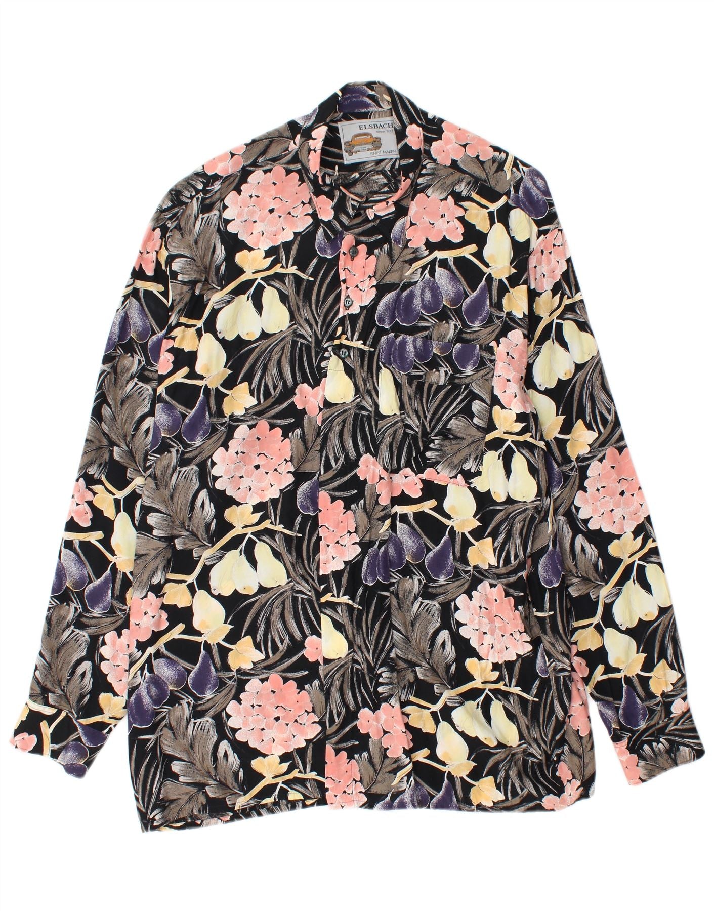Męska koszula pulowerowa ELSBACH rozmiar 41/42, duża czarna wiskoza w kwiaty