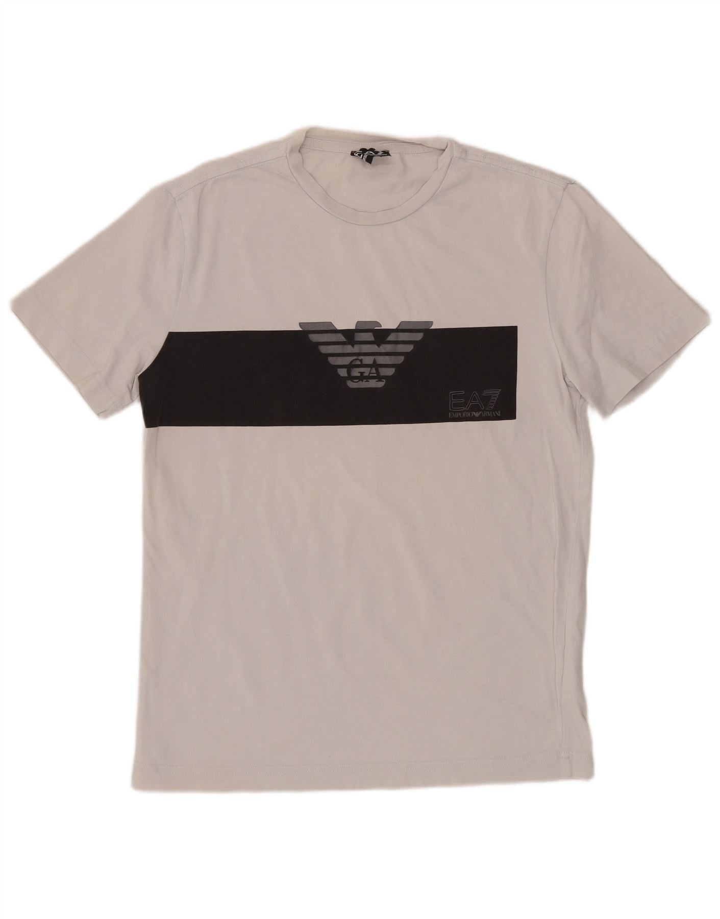 Męska koszulka z grafiką EMPORIO ARMANI, mała, biała, bawełniana w bloki kolorów