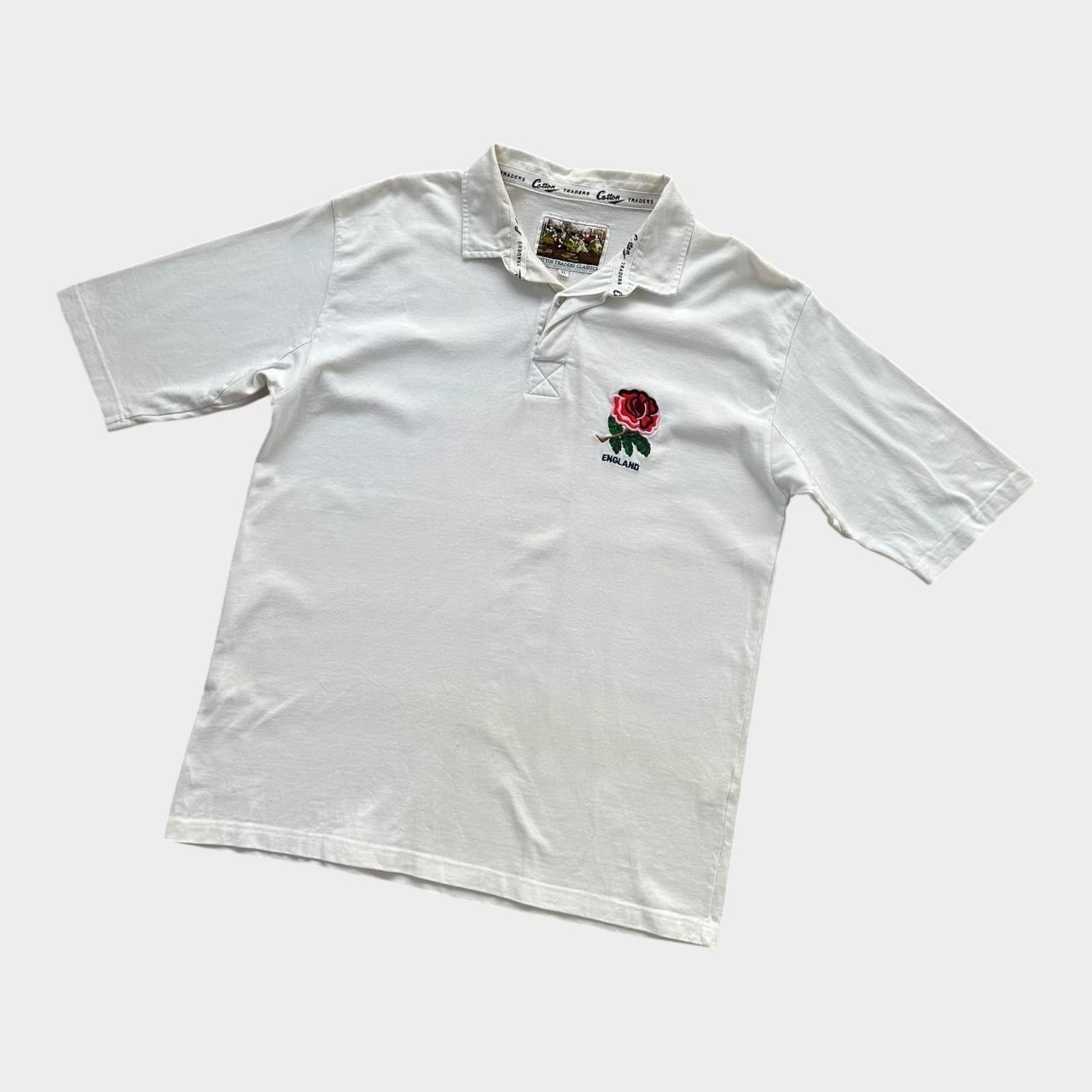 Biała koszulka do rugby z bawełny Traders England w stylu vintage z lat 90. z haftowanym logo na piersi