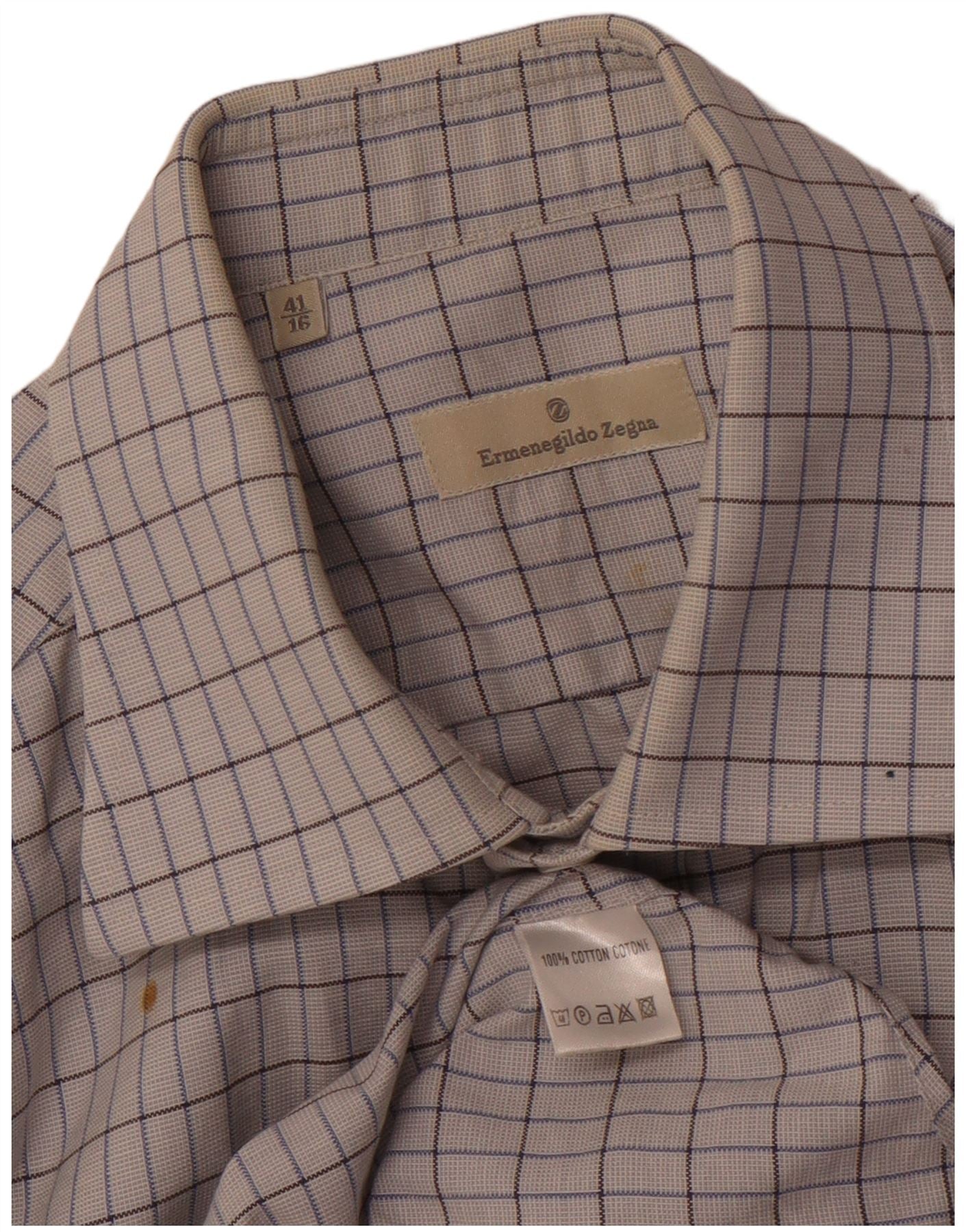 Koszula męska ERMENEGILDO ZEGNA rozmiar 41 16, duża bawełniana kratka w kolorze złamanej bieli