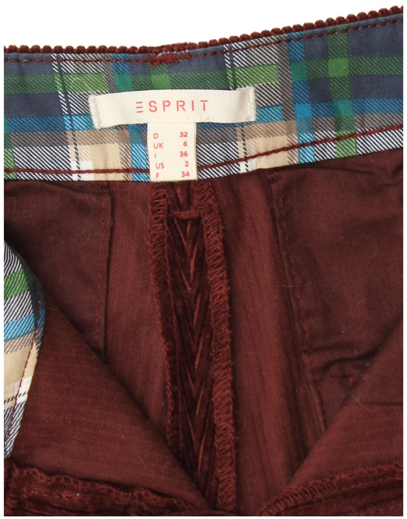 ESPRIT Womens Straight Corduroy Trousers UK 6 XS W26 L32 Burgundy Cotton
