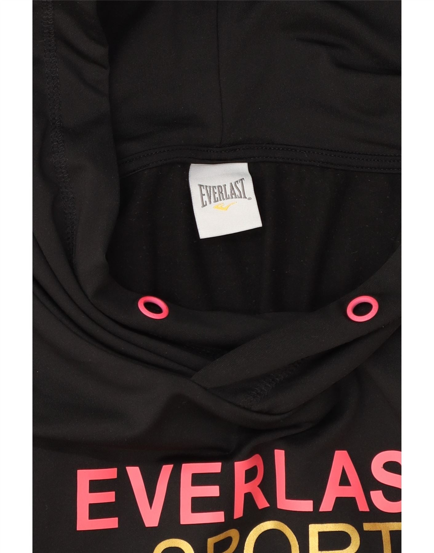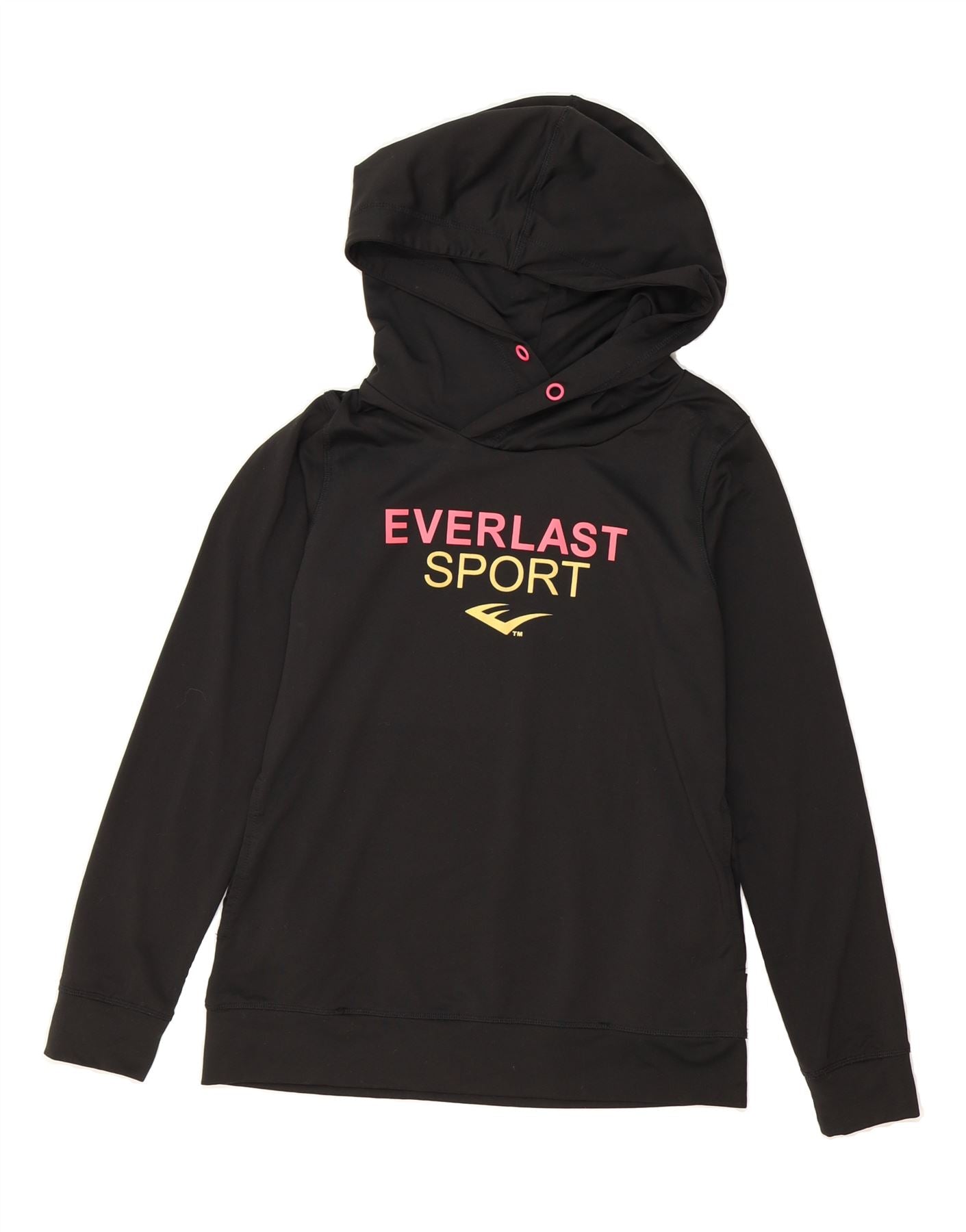 EVERLAST Womens Graphic Hoodie Jumper UK 10 Small Black Polyester
