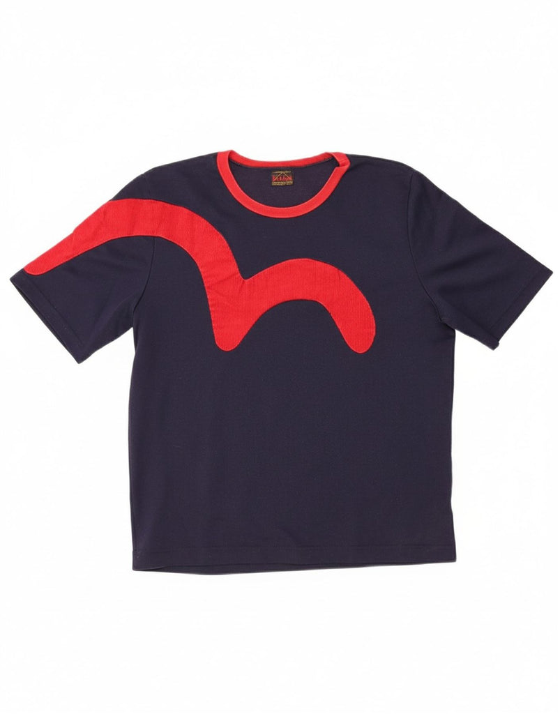 EVISU Womens T-Shirt Top UK 14 Medium Navy Blue Colourblock Polyester