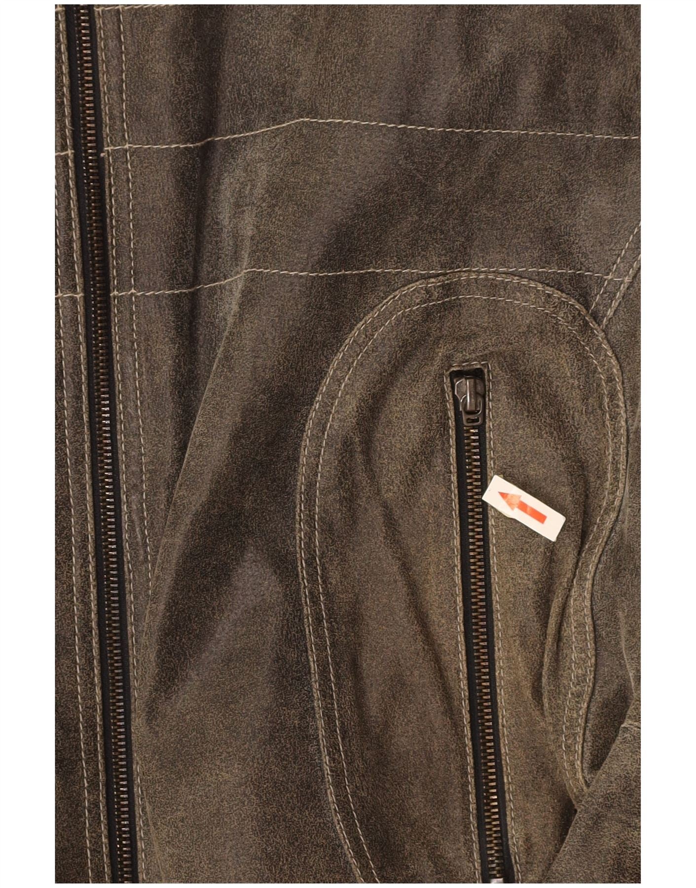 Męska kurtka skórzana EXPLORER UK 40, duża, szara skóra z blokami kolorów