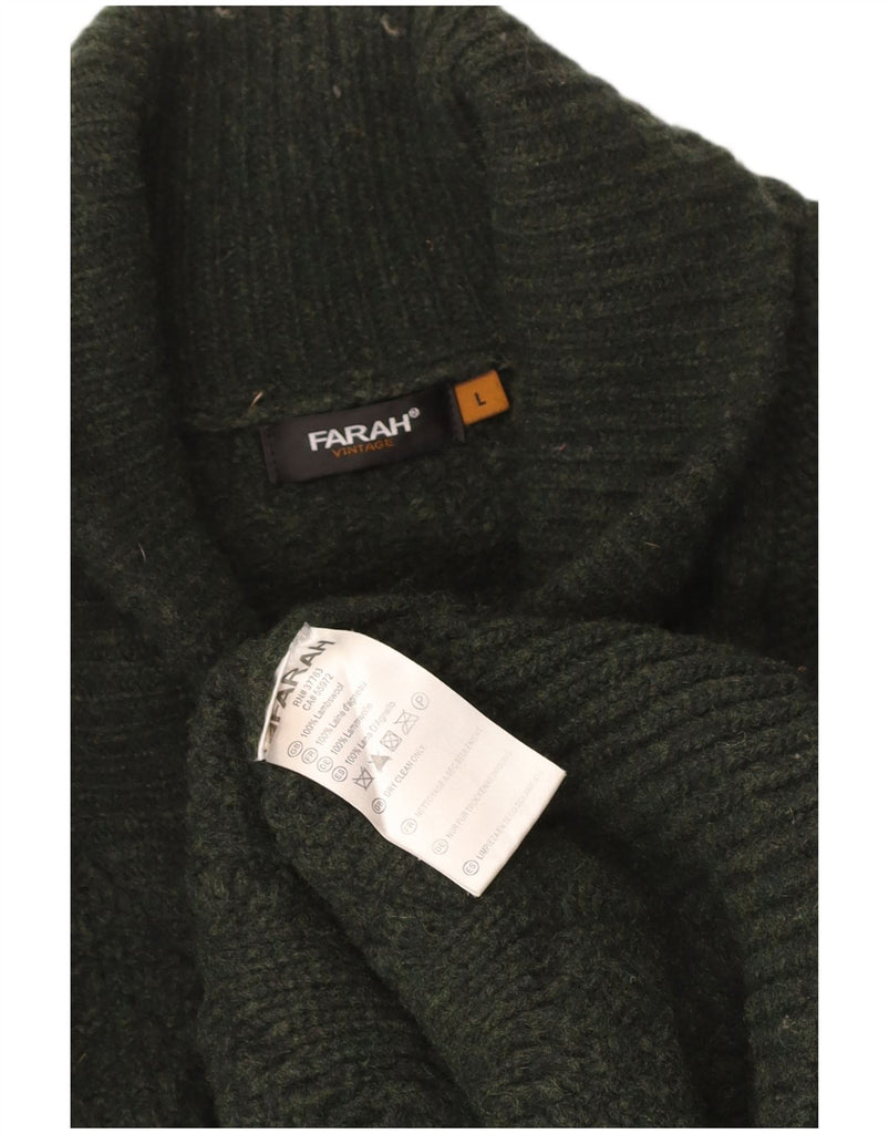- AI Description: This Farah mens cardigan sweater is crafted from luxurious 100 percent virgin wool knit. Its heavyweight construction offers exceptional thermal comfort. The classic regular fit features long sleeves and a distinguished collared shawl neck. A button closure runs down the front, adding a refined touch. This piece combines timeless style with practical warmth.