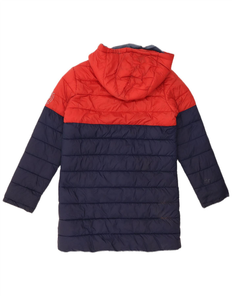 FAT FACE Boys Hooded Padded Coat 10-11 Years Navy Blue Colourblock Nylon
