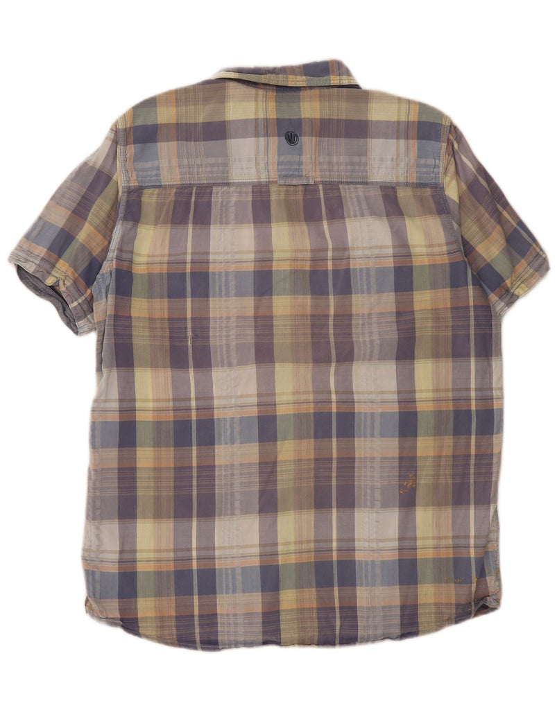 FAT FACE Mens Classic Fit Short Sleeve Shirt Large Blue Check Cotton