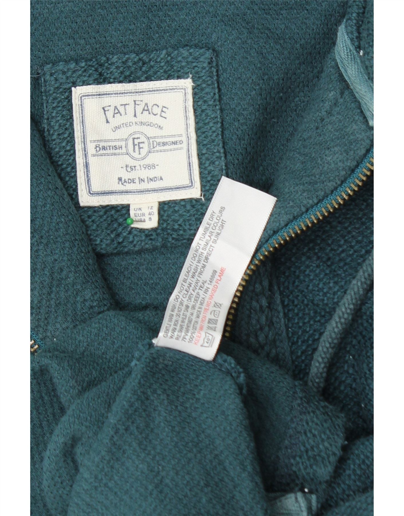 Damski sweter rozpinany z kapturem FAT FACE UK 12, średnia zielona bawełna