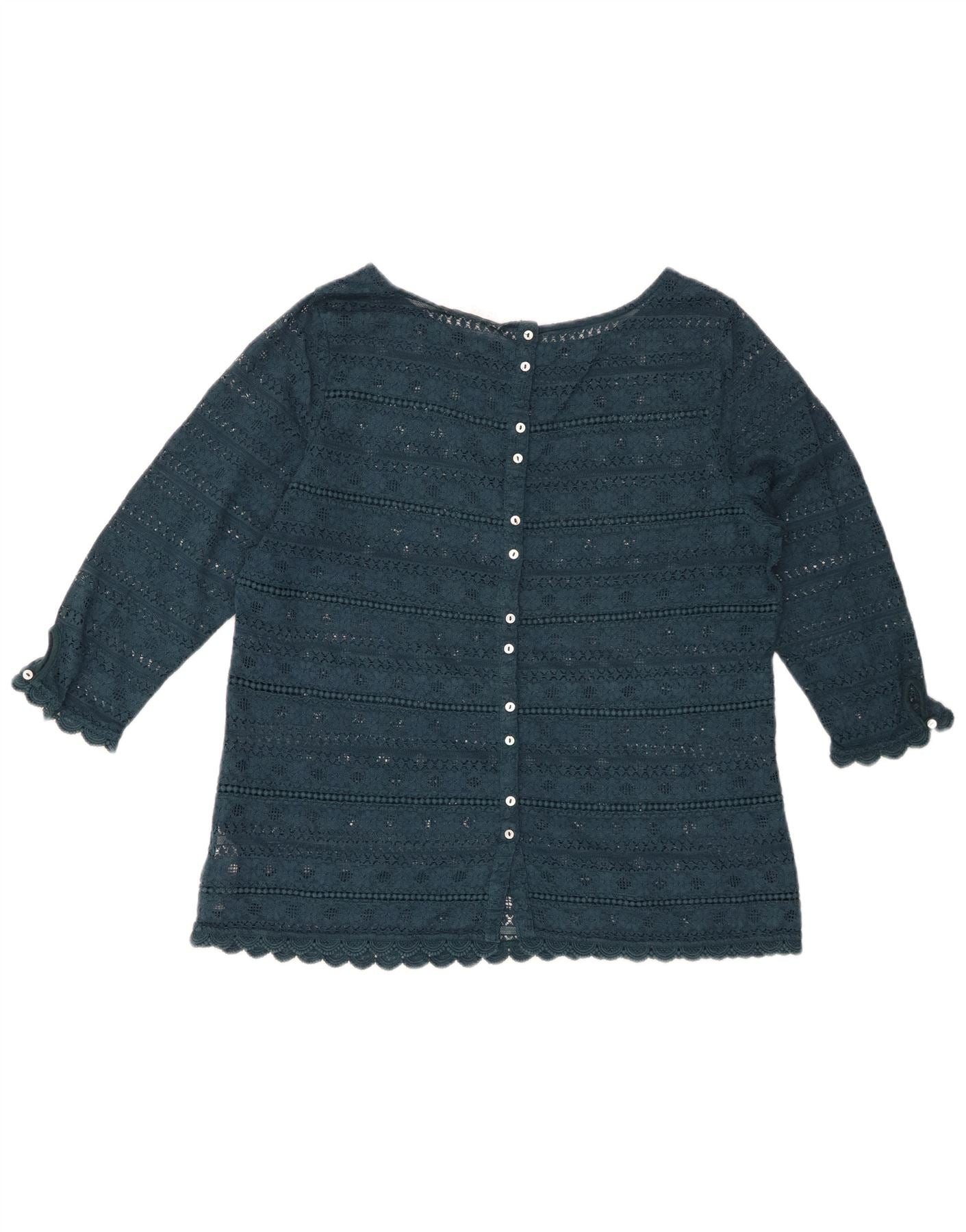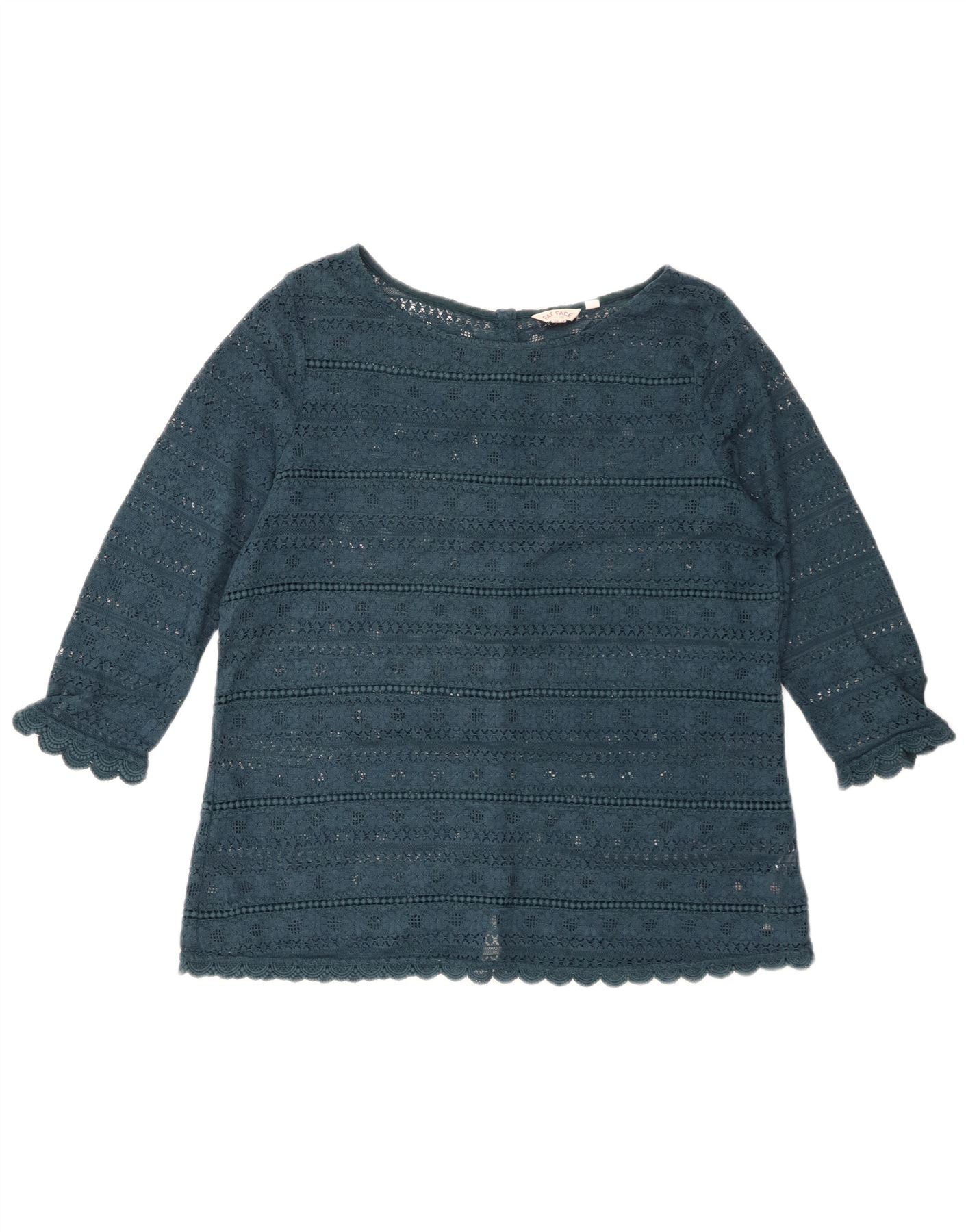 Koronkowa bluzka damska FAT FACE z rękawem 3/4 UK 14, duża, zielona, bawełniana w kwiaty