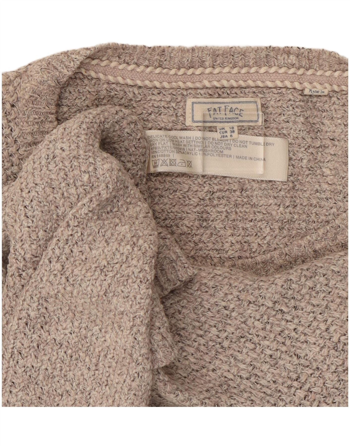 Damski sweter oversize Fat Face z dekoltem w łódkę, UK 10, mały, szary, bawełniany