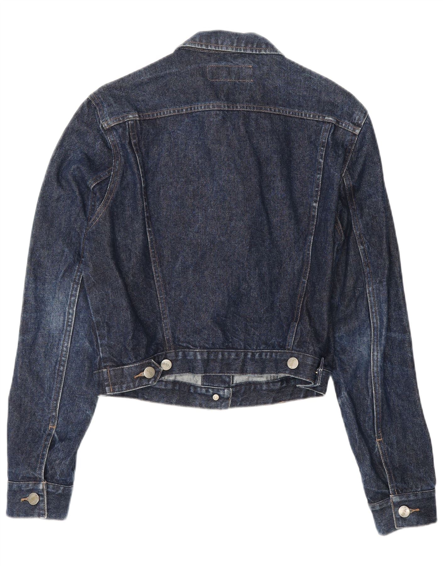 FCUK Womens Crop Denim Jacket UK 14 Large Navy Blue Cotton