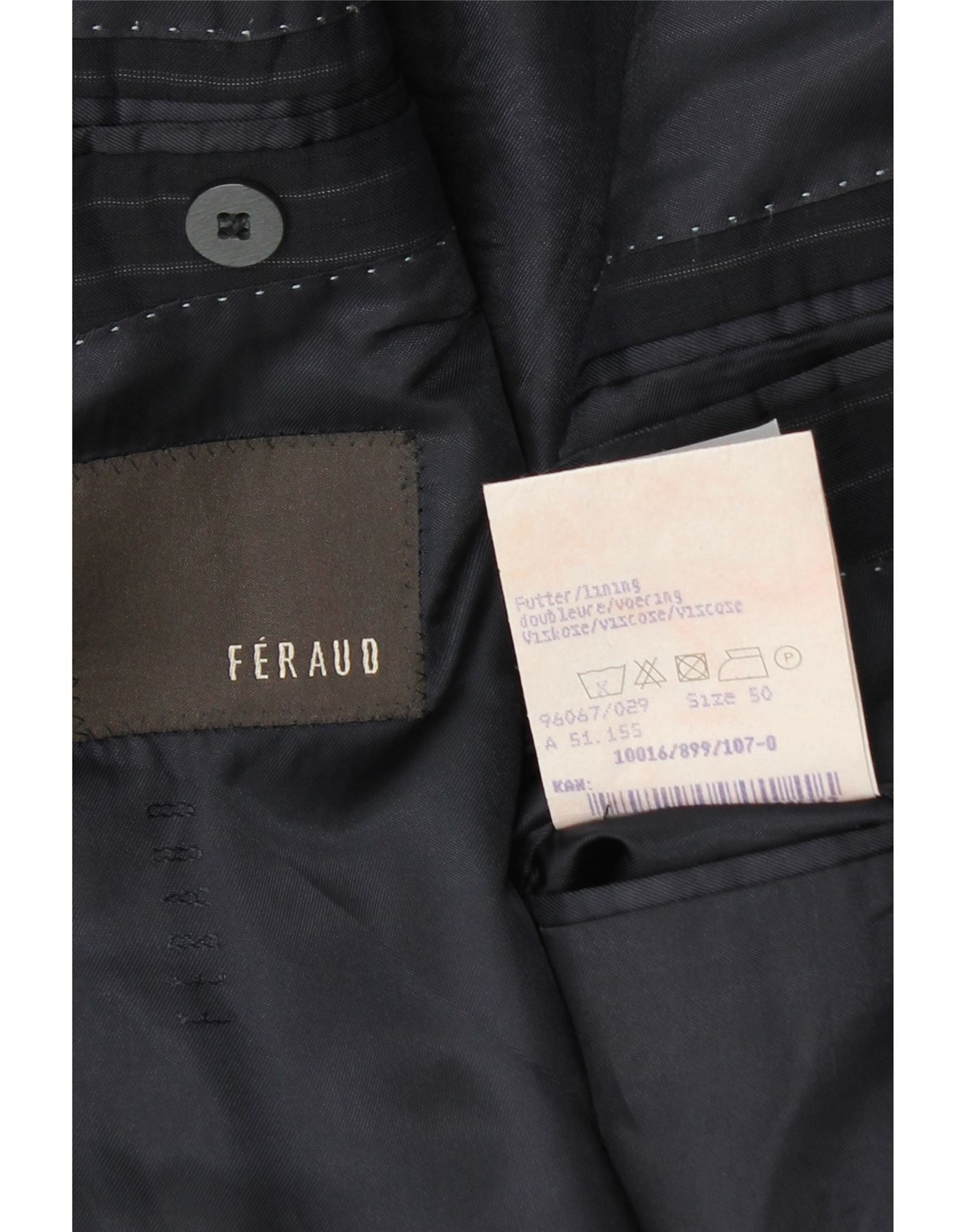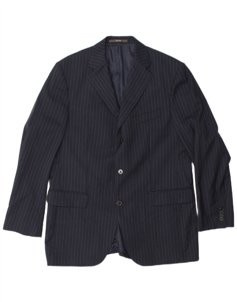 FERAUD Mens 3 Button Blazer Jacket IT 50 Large Navy Blue Pinstripe Wool
