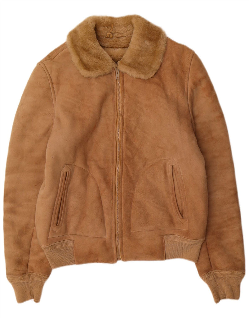 Damska kurtka shearling FIBOK UK 16, duża brązowa kurtka shearling
