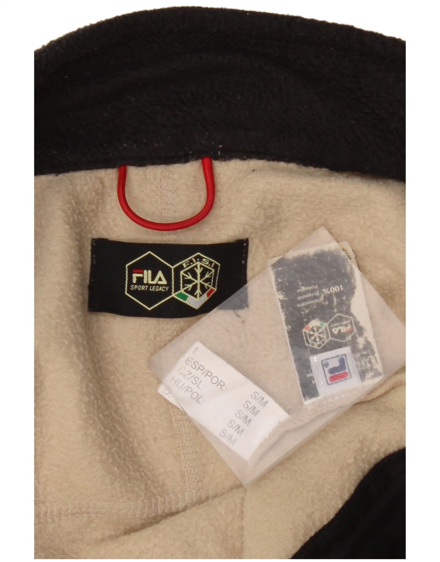 Męska kurtka polarowa FILA UK 36, mały beżowy poliester z blokami kolorów